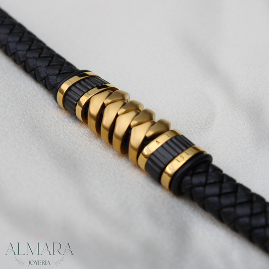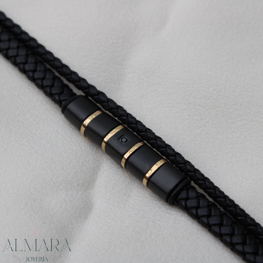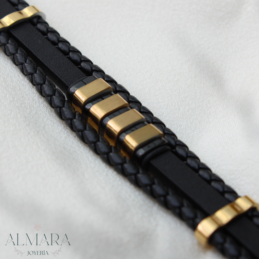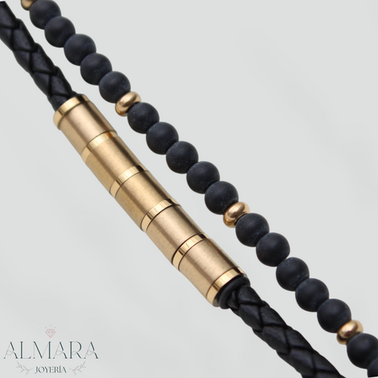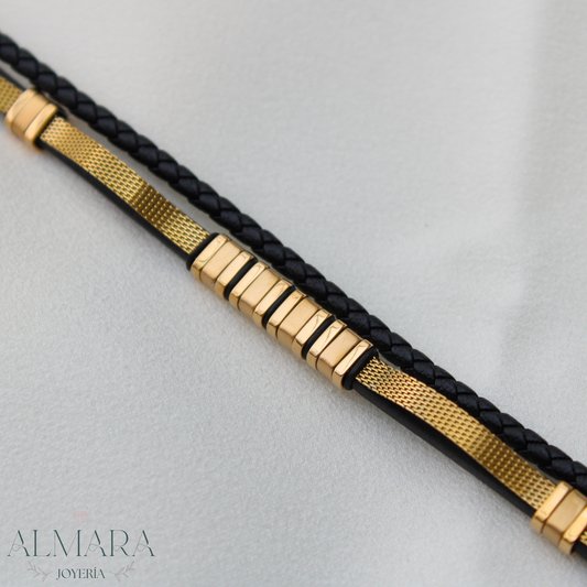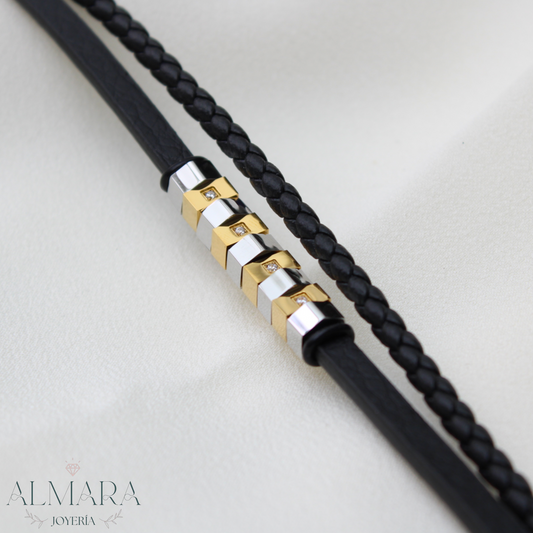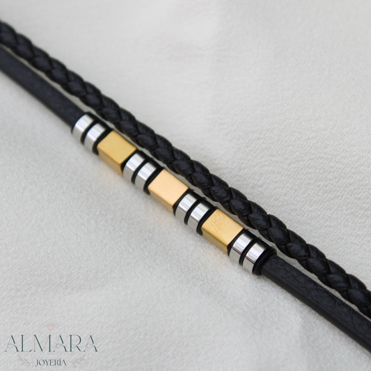 Pulsera Doble con Grecas de Acro y Piel