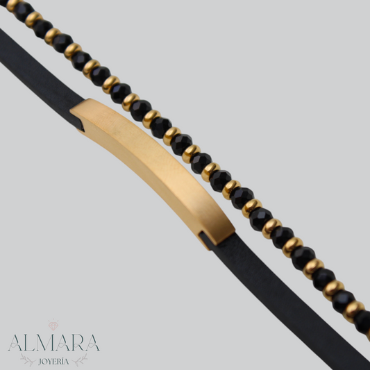 Pulsera Doble de Acero con Piel