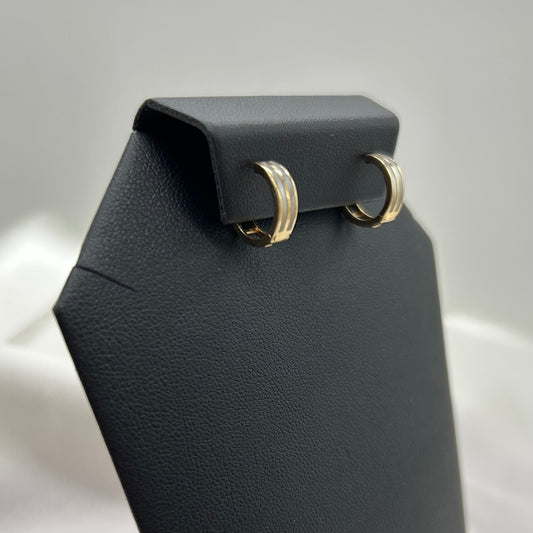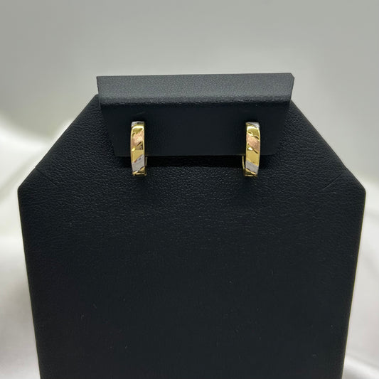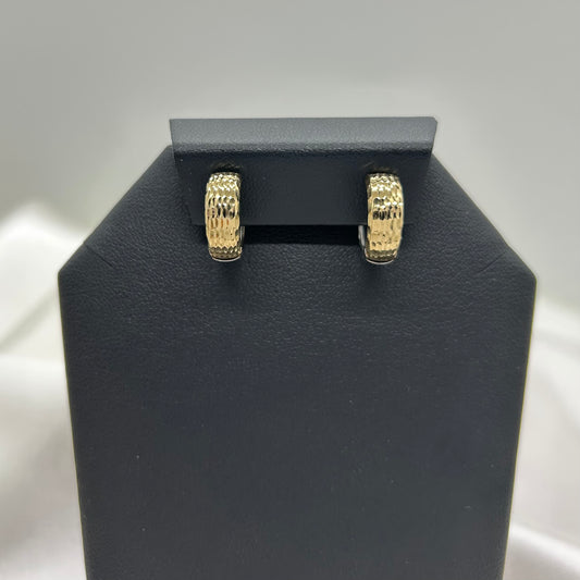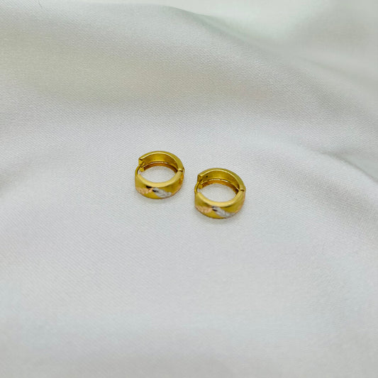 Huggies Circulares Diamantadas con líneas en Tres Oros de 14K