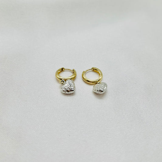 Huggies con Dije Colgante de Corazón Combinado en Dos Oros 14K