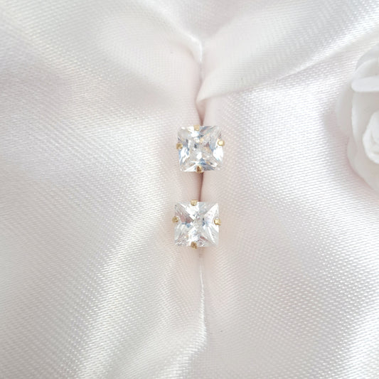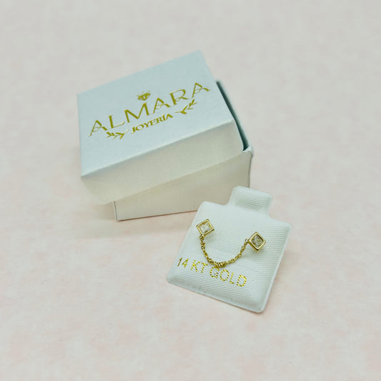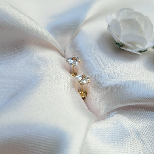 Broquel Curvo (Teléfono) Corazón de Zirconia 14K