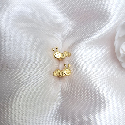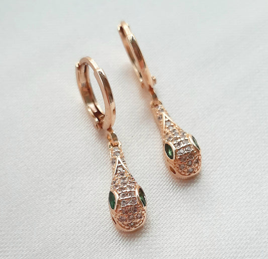 Aretes Huggies con Colgantes de Serpientes y Zirconias de Oro Laminado
