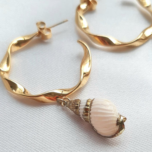 Arracadas en Espiral de Acero Inoxidable con Conchita