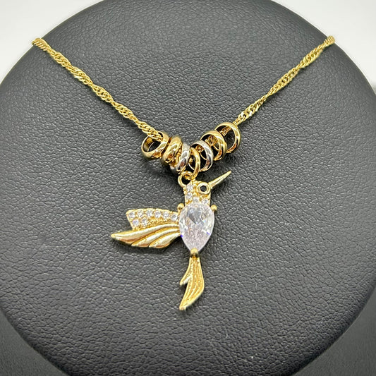 Collar de Colibrí con Zirconia y Aritos de Oro Laminado