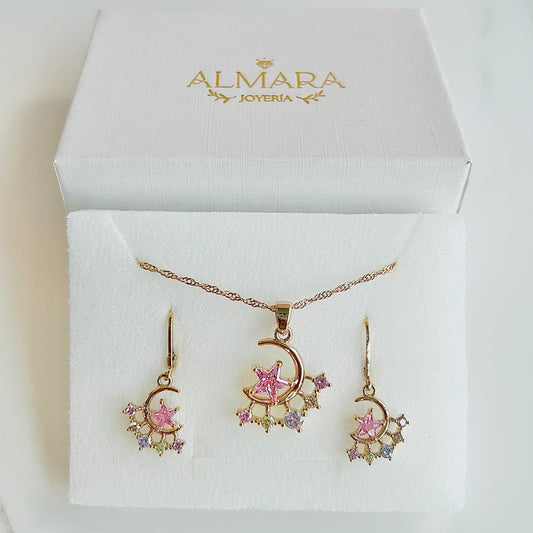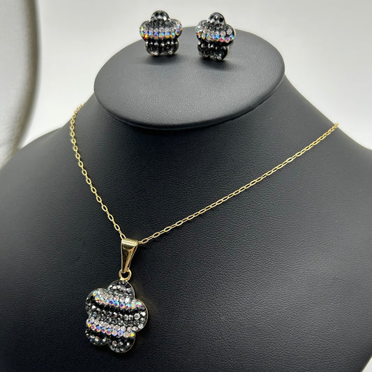 Conjunto Collar y Aretes de Zirconias Negras de Oro Laminado