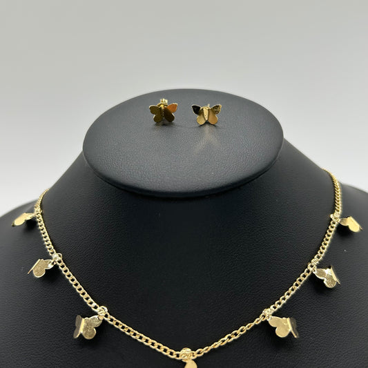 Collar de Mariposas 3D Tipo Corbatín de Oro Laminado
