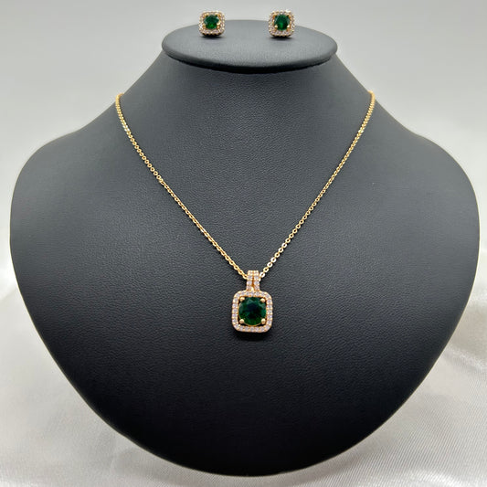 Conjunto Collar y Aretes de Oro Laminado con Zirconias Verdes