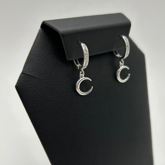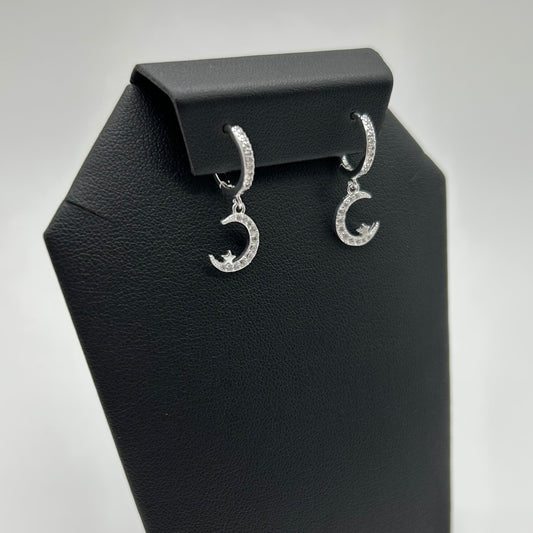 Huggies de Lunitas Colgantes y Estrellitas con Zirconias en Plata