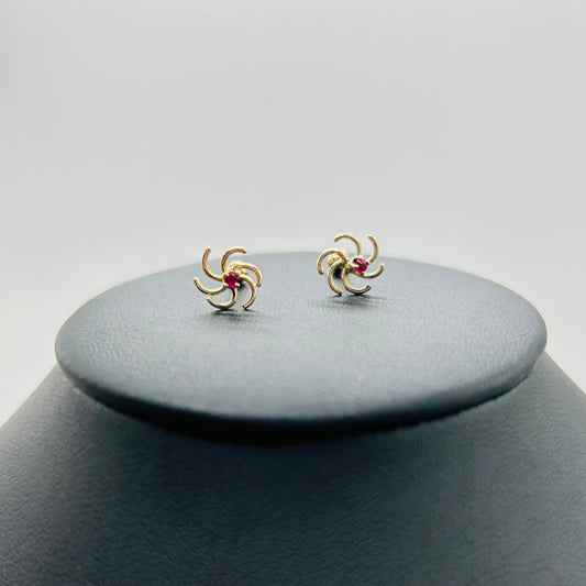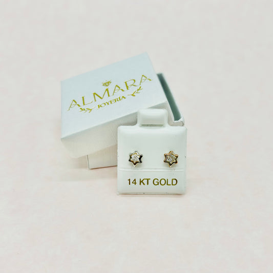 Broqueles Estrella con Zirconia Roja Oro 14k