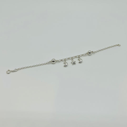 Pulsera de Bolitas con Dije de Luna y Estrella