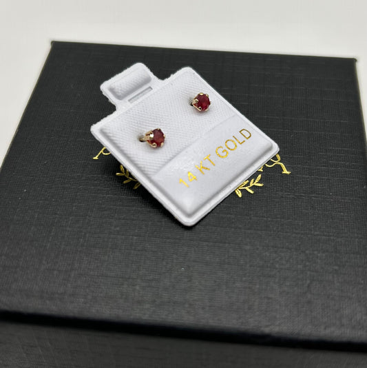 Broquel con Rubí Natural 4mm en Oro de 14K