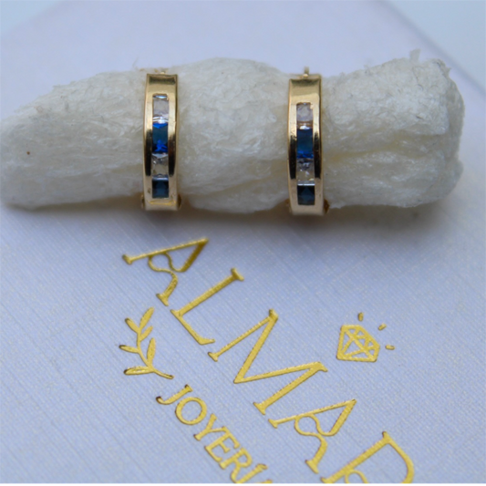 Huggies en Oro 10K con Zirconias Azules y Blancas