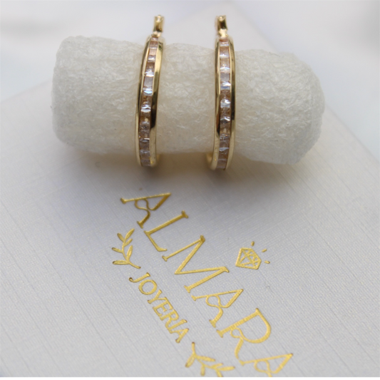 Huggies en Oro 10K con Zirconias Rosas y Blancas