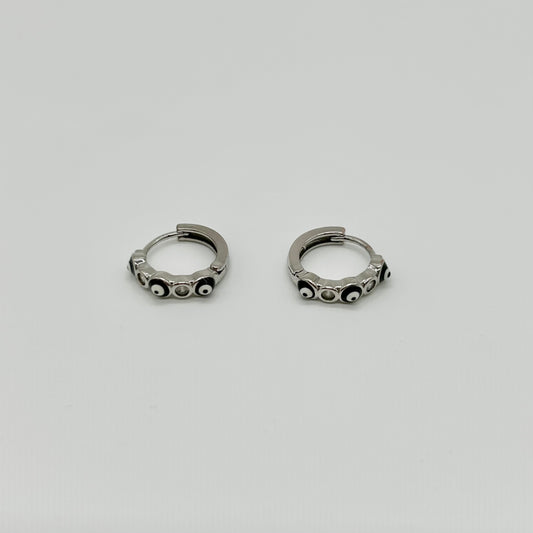 Huggies de Tres Ojitos Negros con Zirconias en Rodio