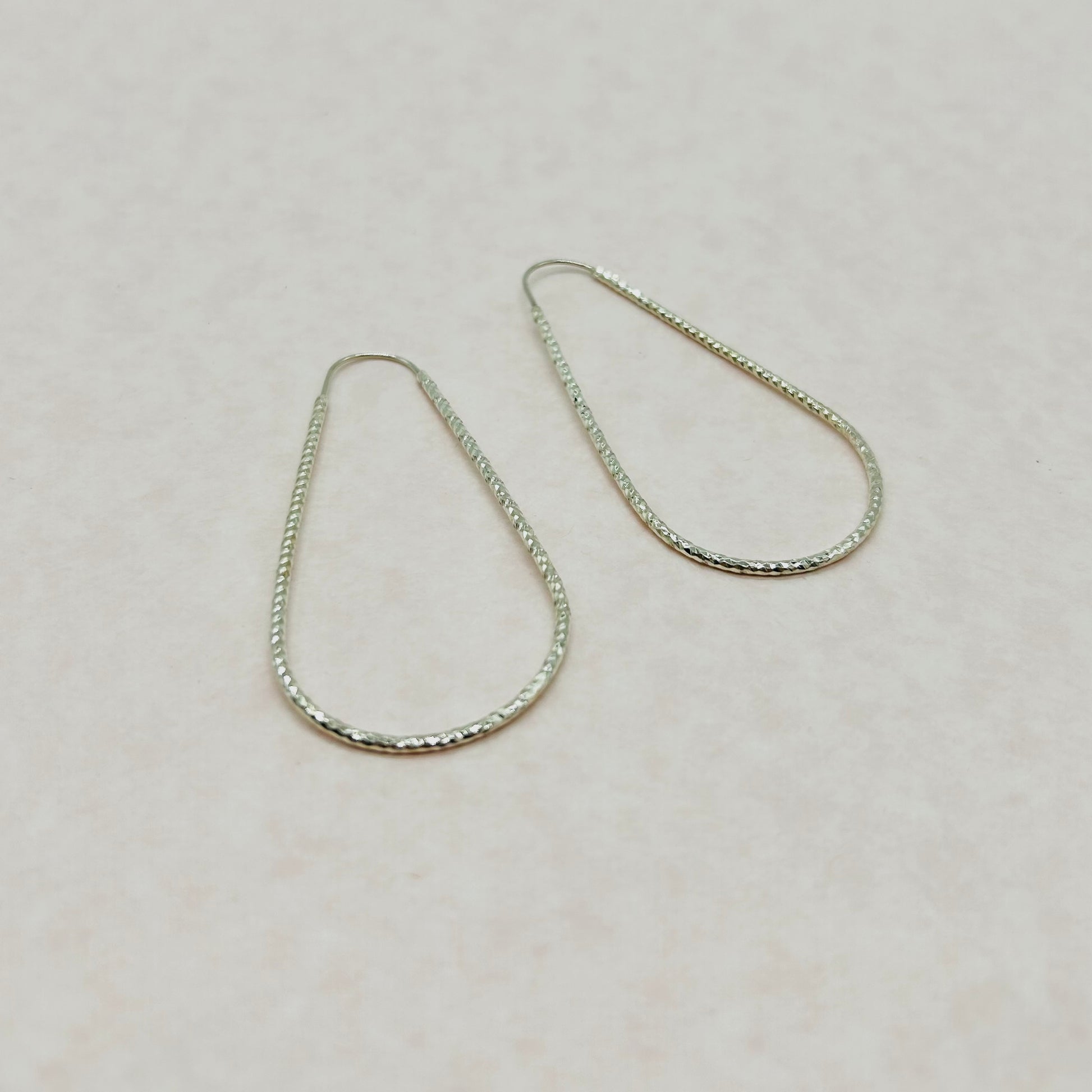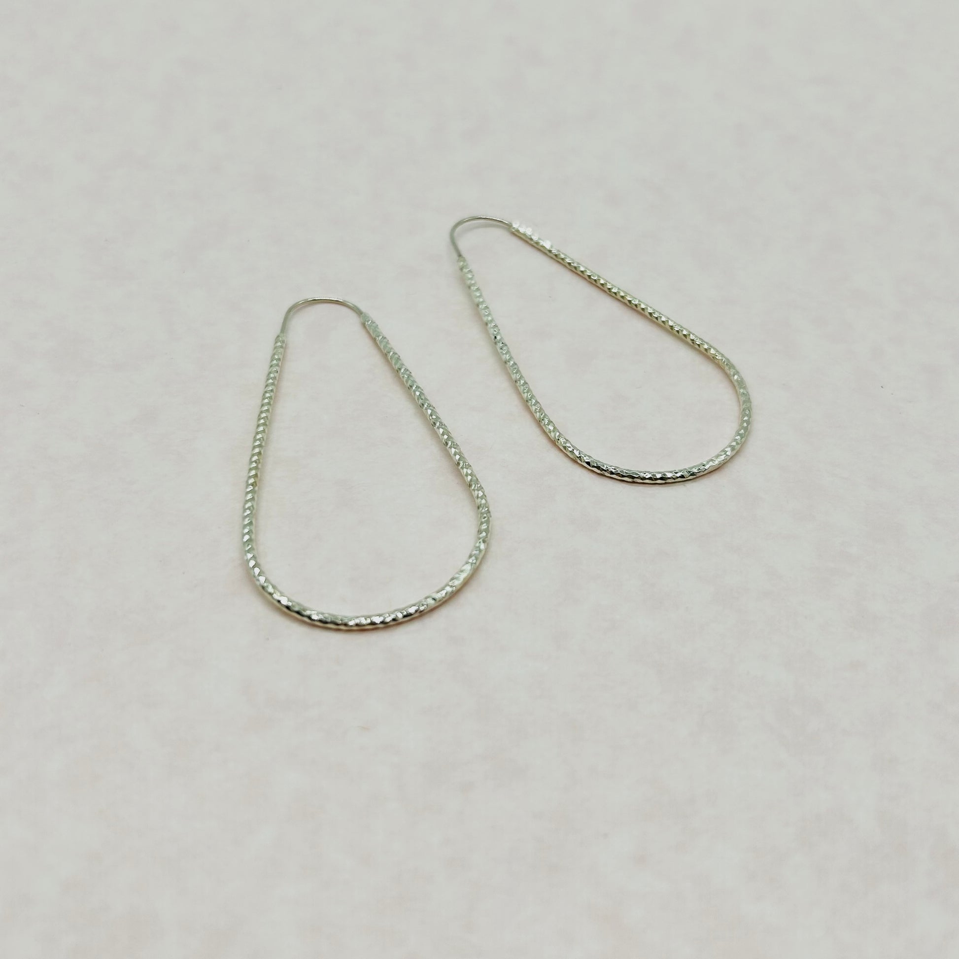 Aretes de Tubo Facetado en Forma de Gota de Plata