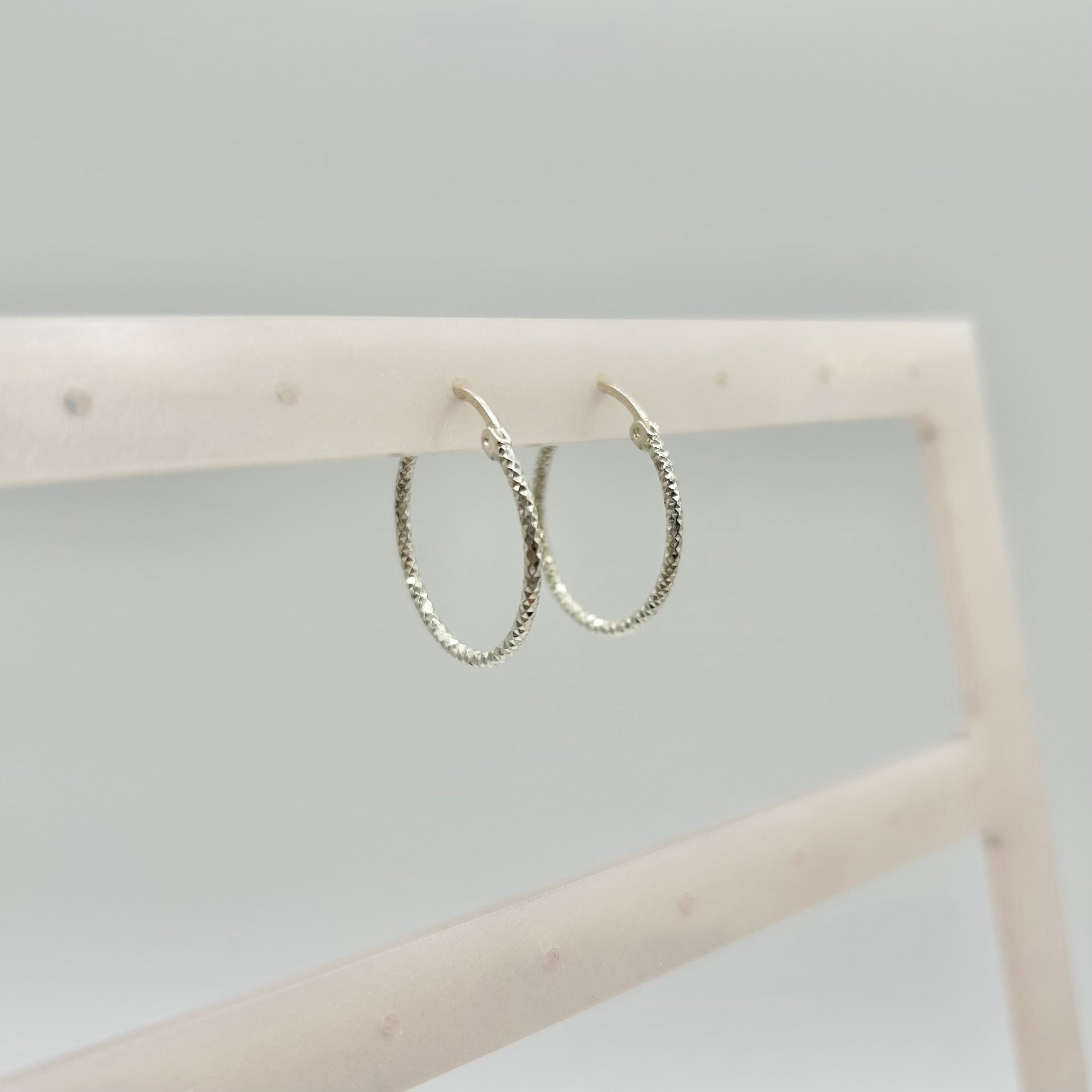 Arracadas facetadas de plata brillan con cada movimiento, haciéndote sentir única y sofisticada.