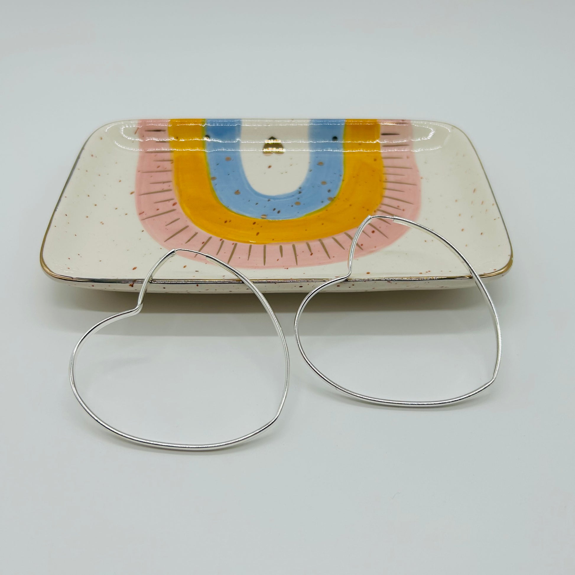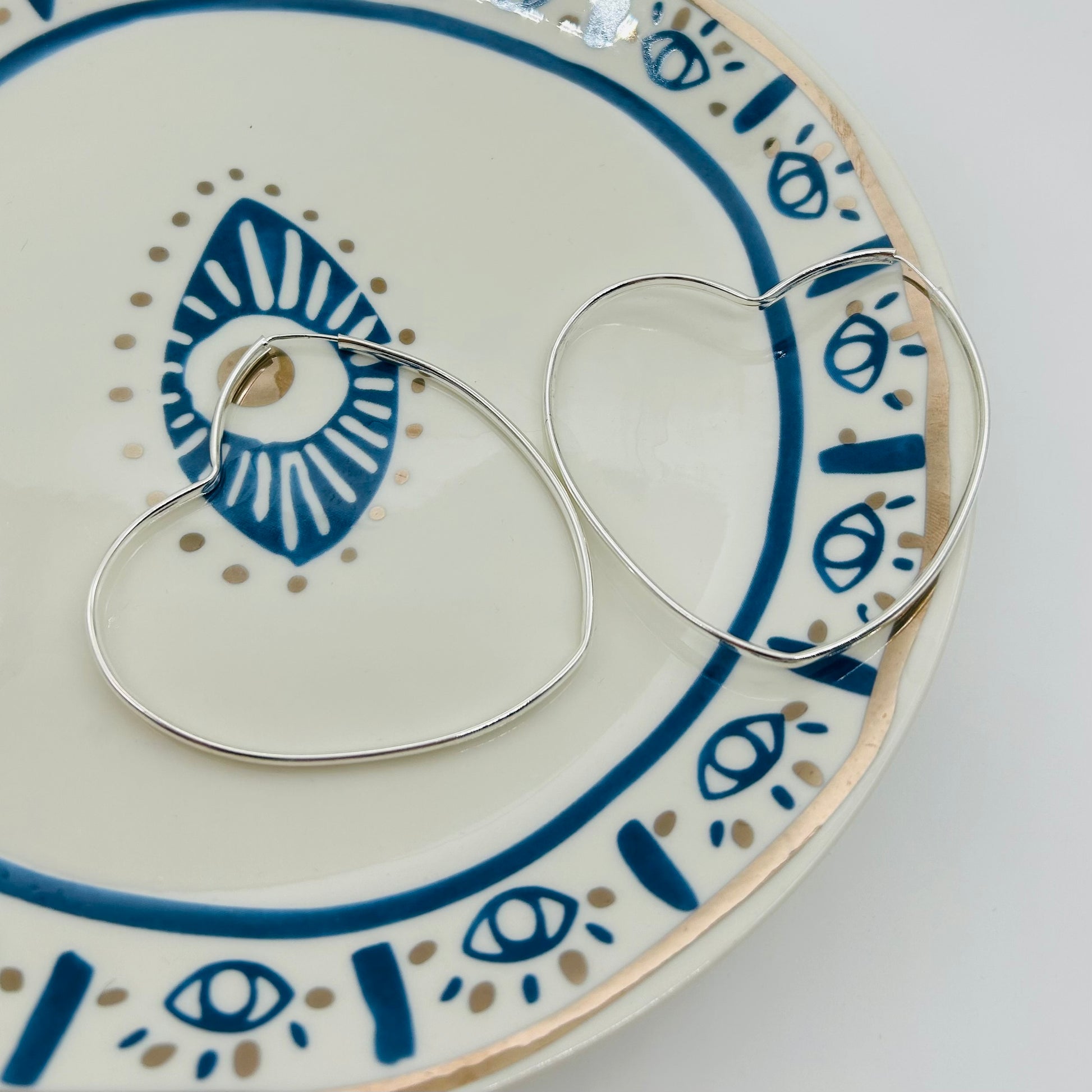 Estas arracadas plateadas tienen una forma de corazón encantadora que seguramente robará corazones ¡Haz que tu corazón brille con estas hermosas arracadas de plata!