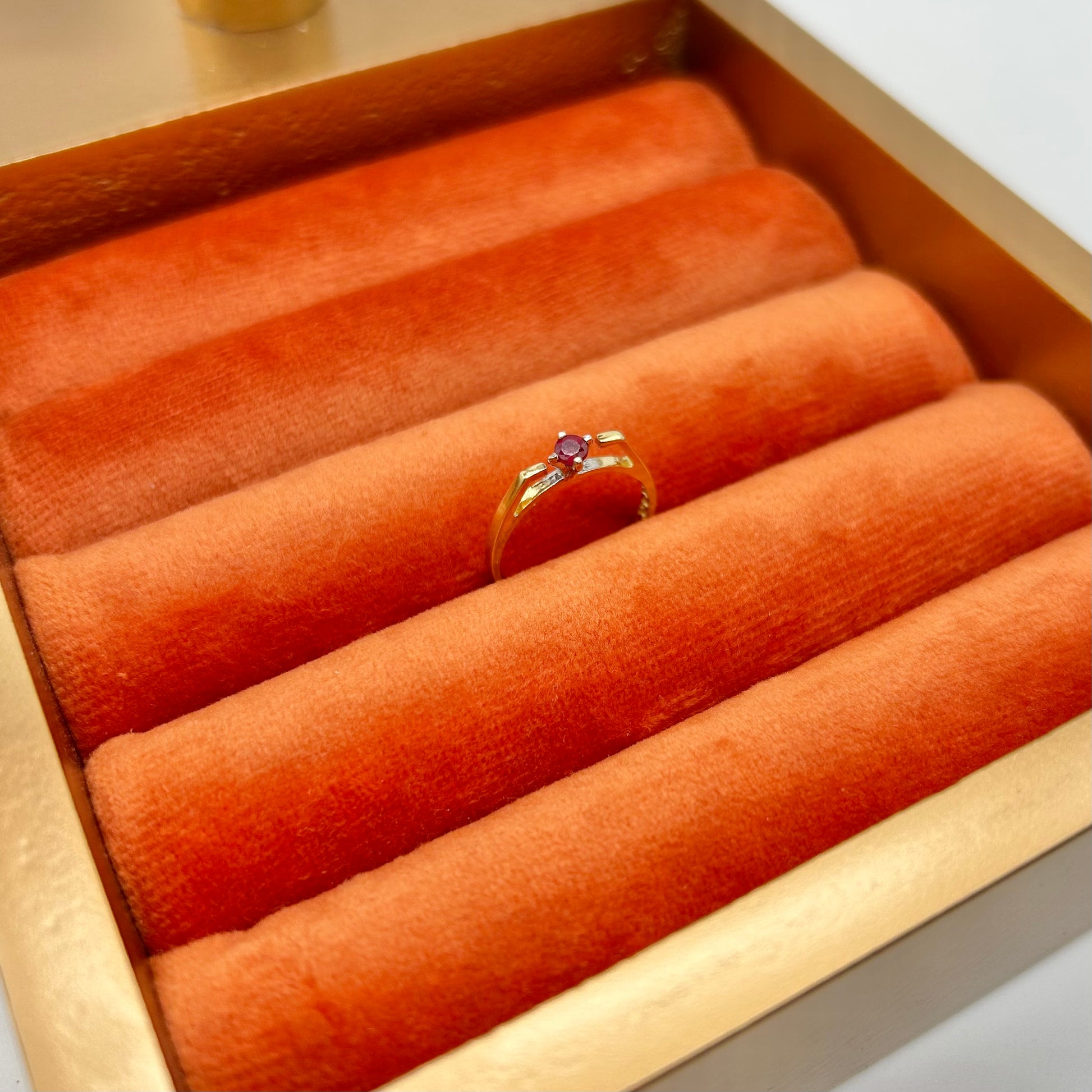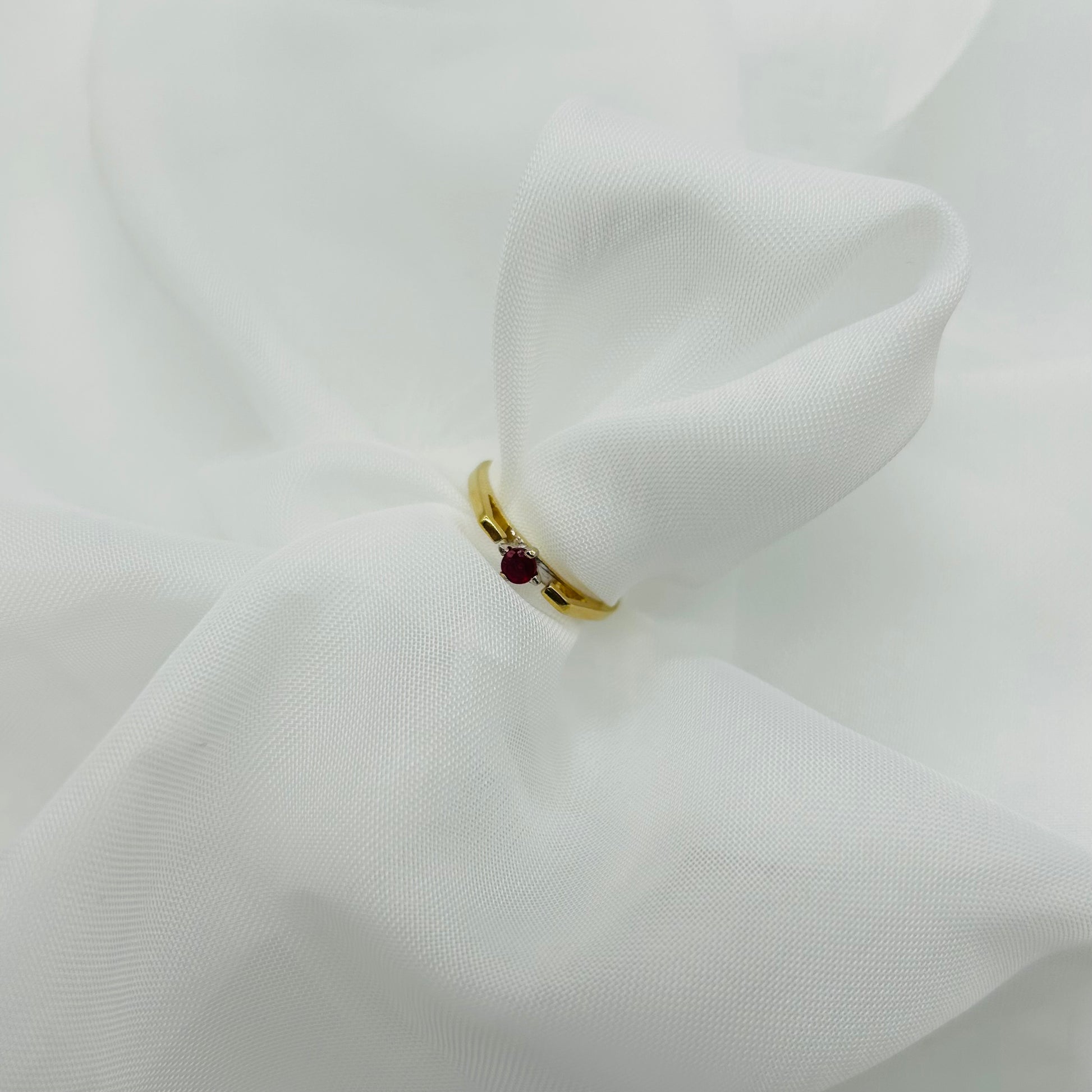 ¡Dale un toque de elegancia y diversión a tu look con nuestro anillo con rubí natural en oro de 14K! Atemporal y sofisticado, este anillo de alta calidad es perfecto para cualquier ocasión.