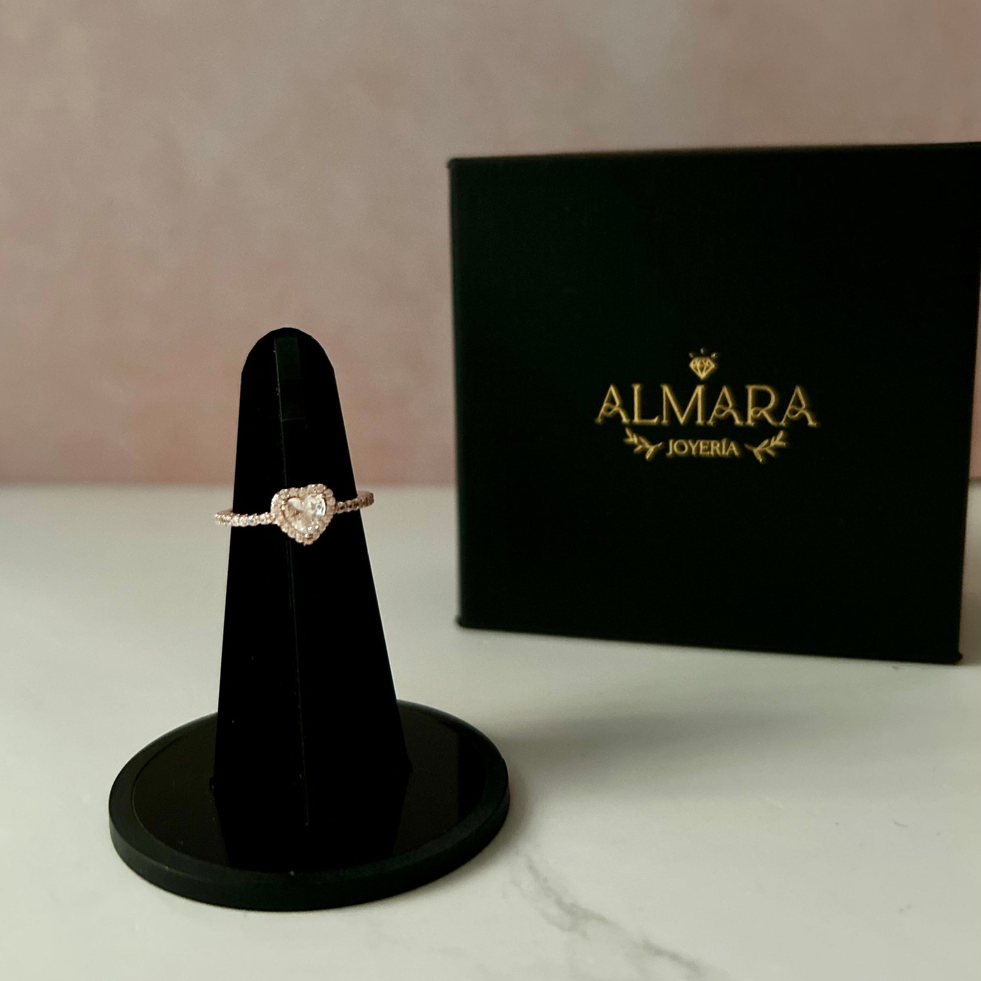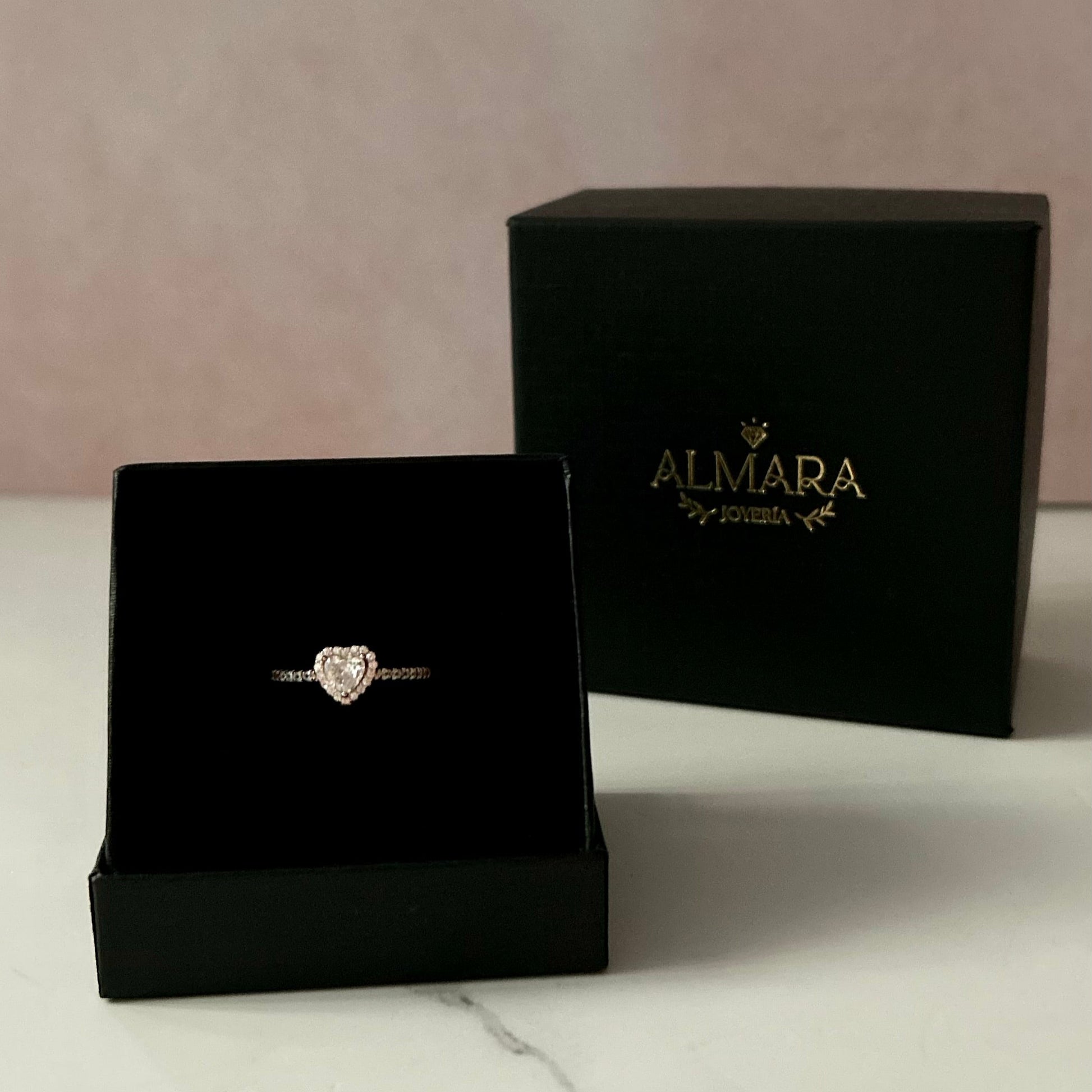 Hermoso anillo de plata Pandora en forma de corazón con zirconias.