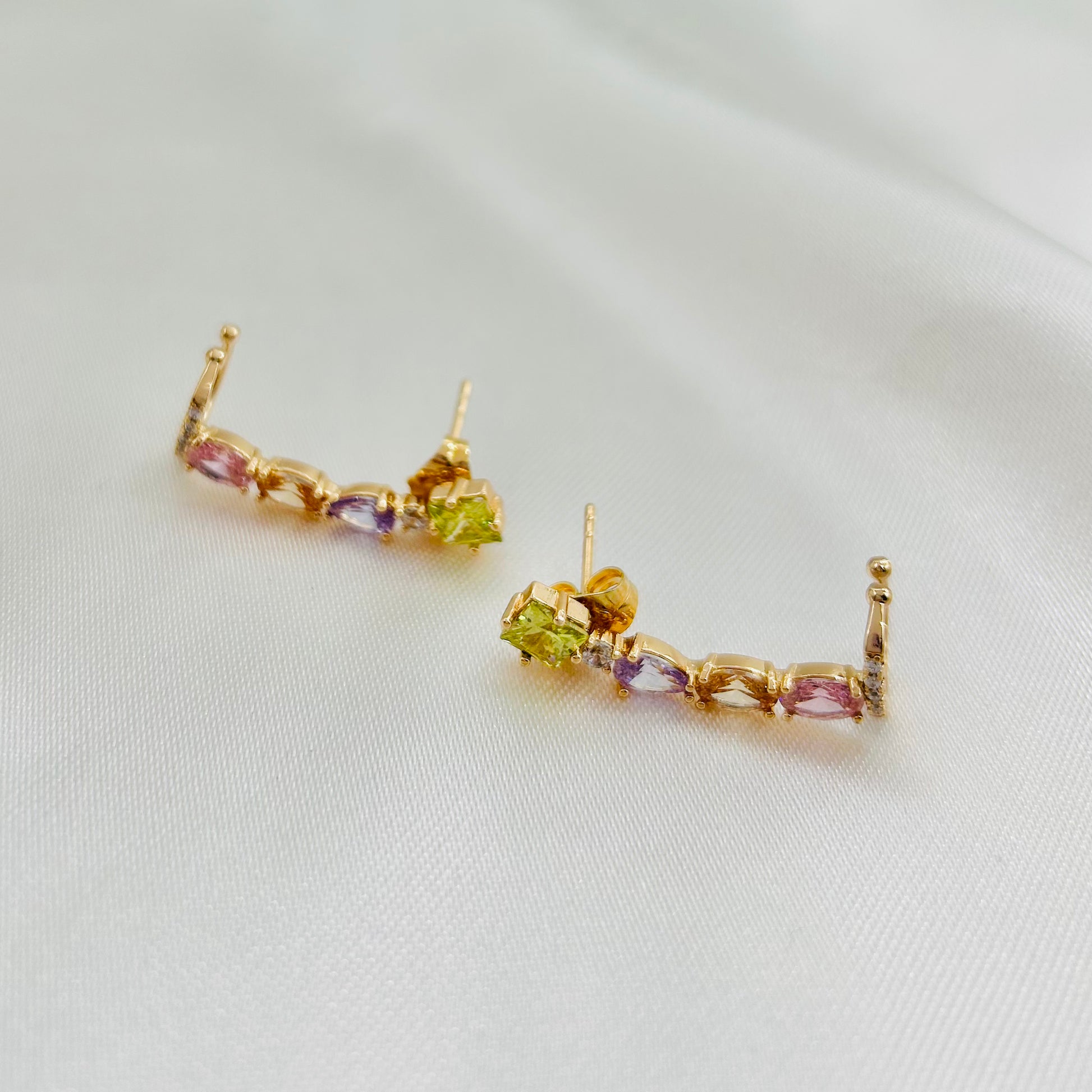 Arete de clip con zirconias en tonos pastel de oro laminado