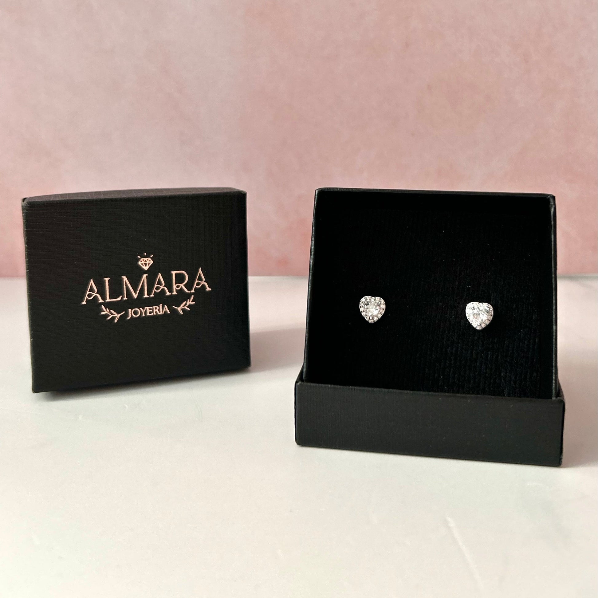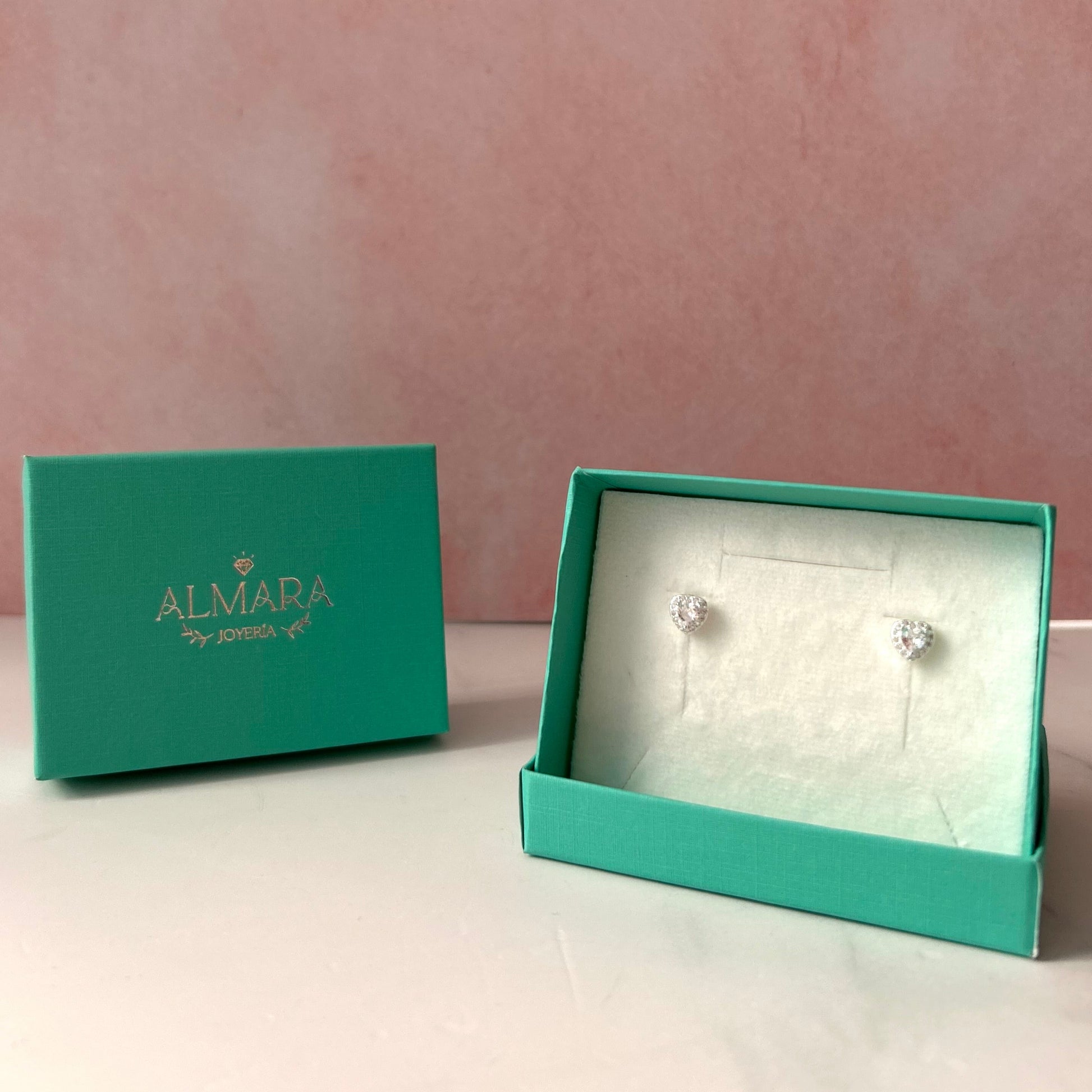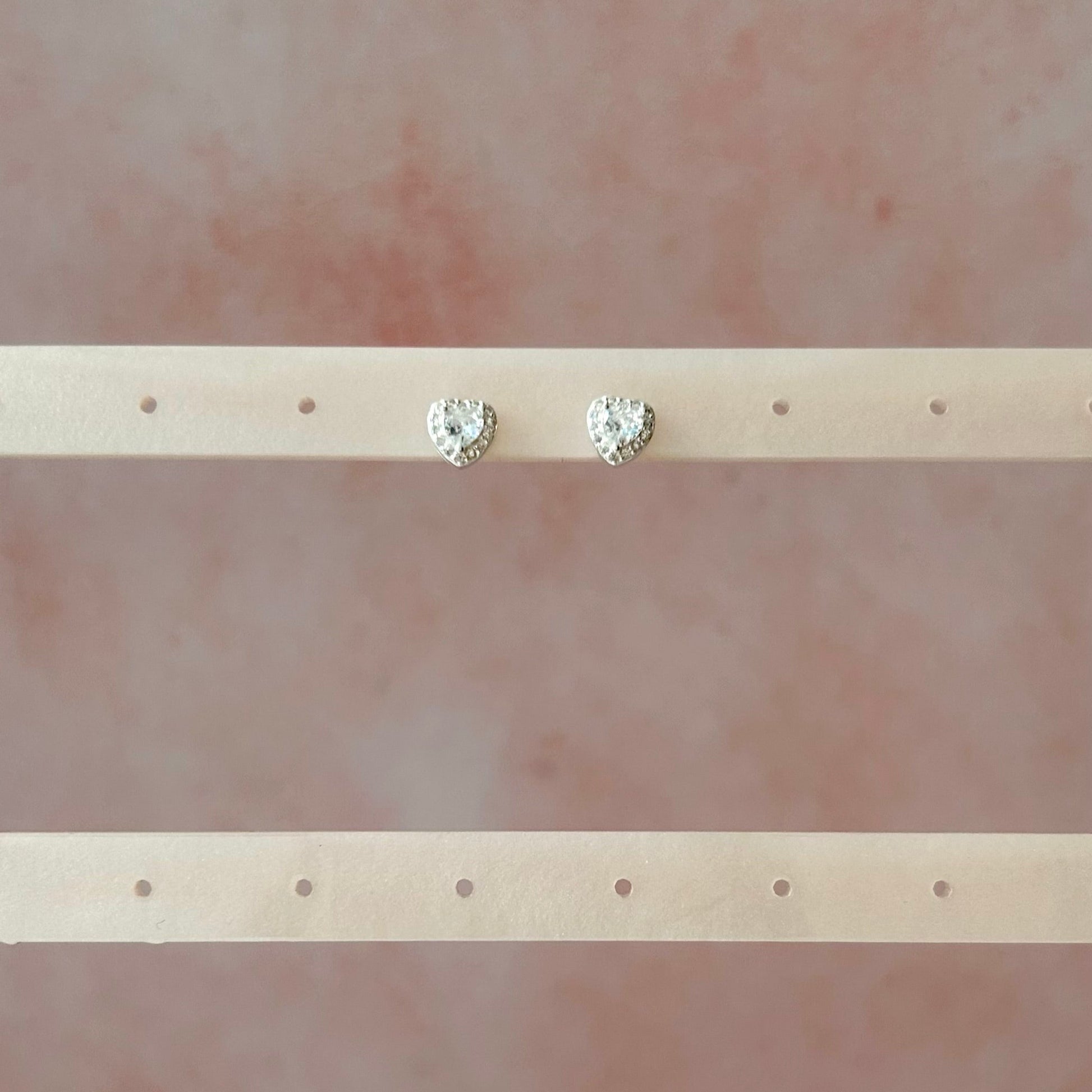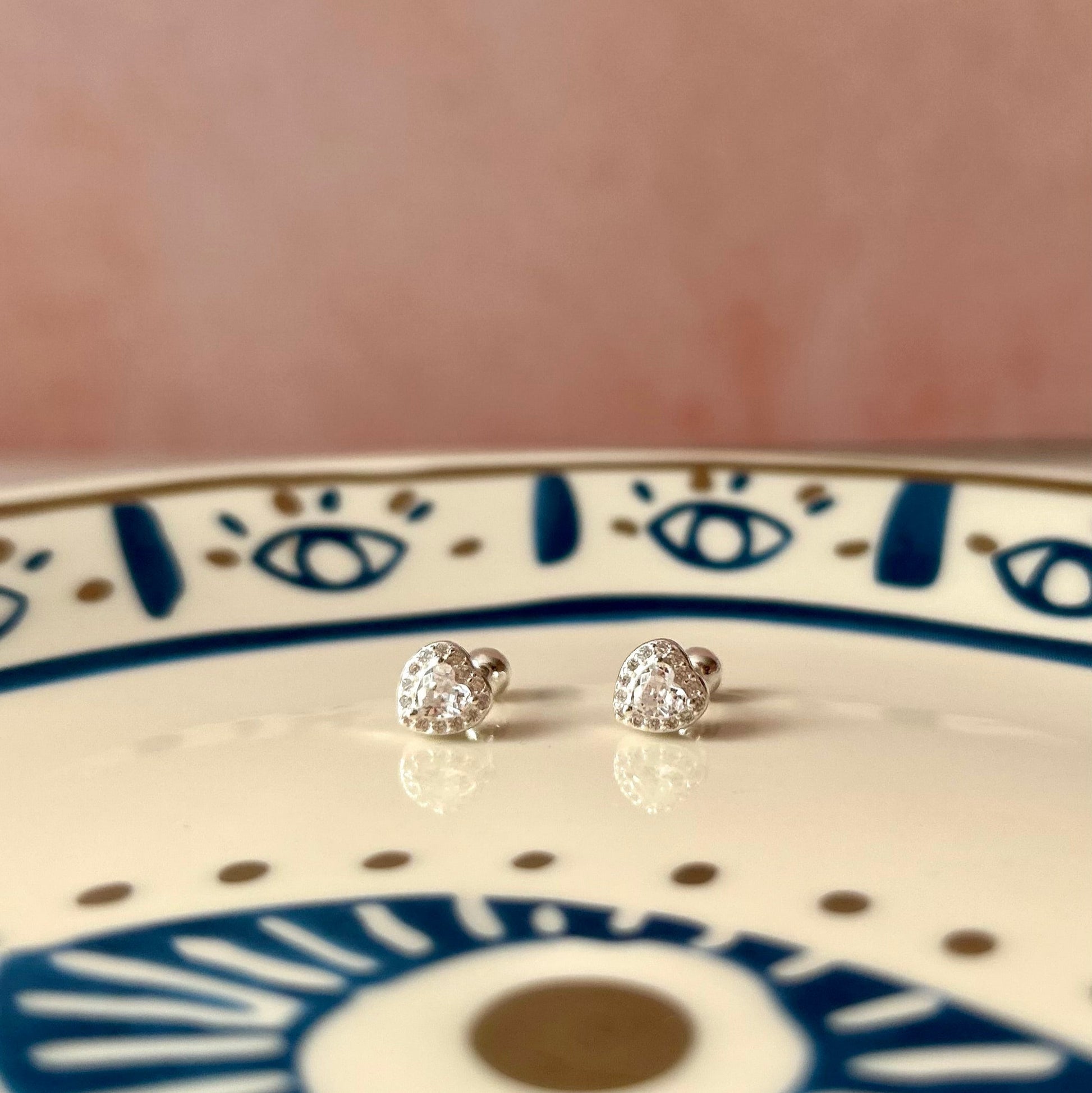 Hermosos aretes de plata de corazón con zirconia en forma de corazón.