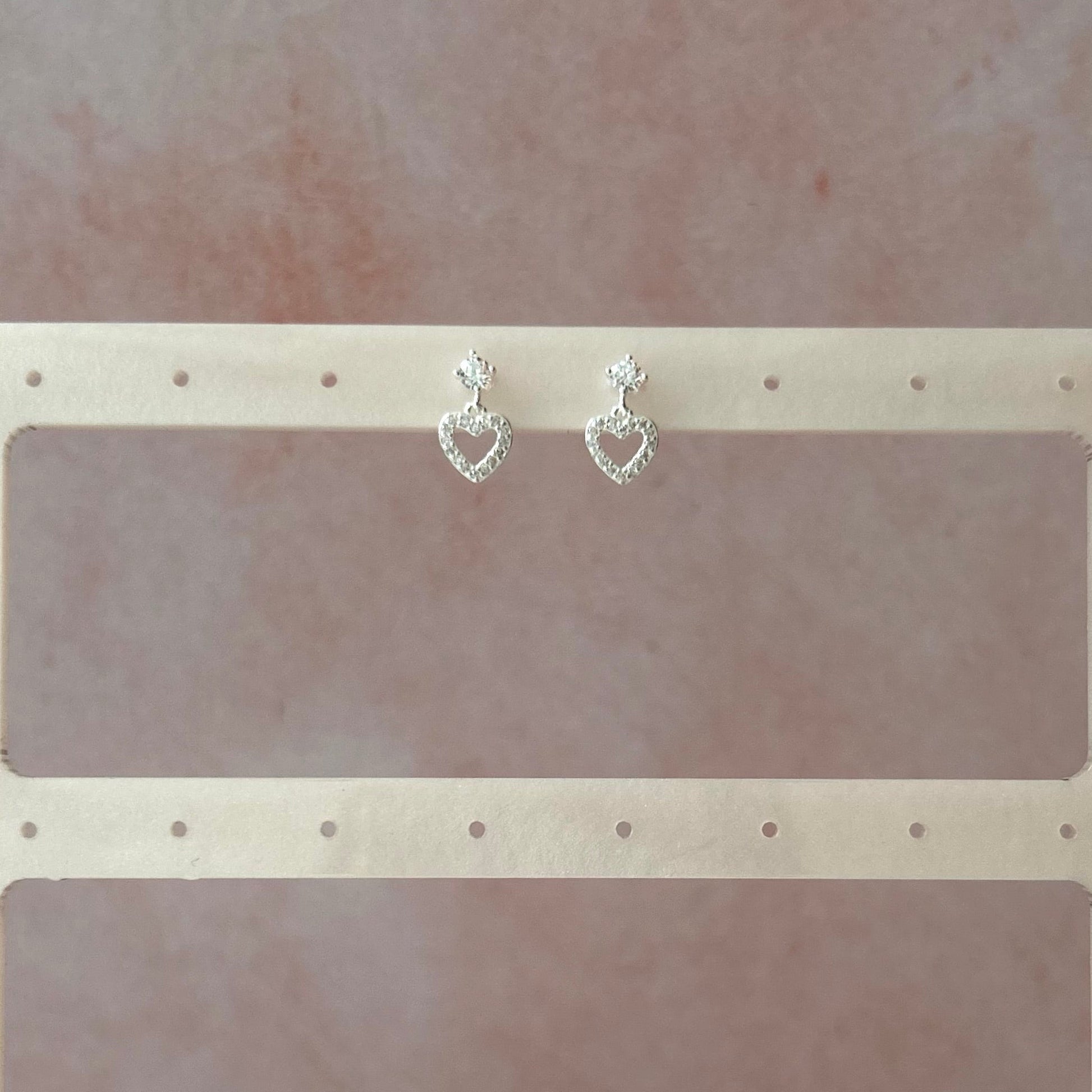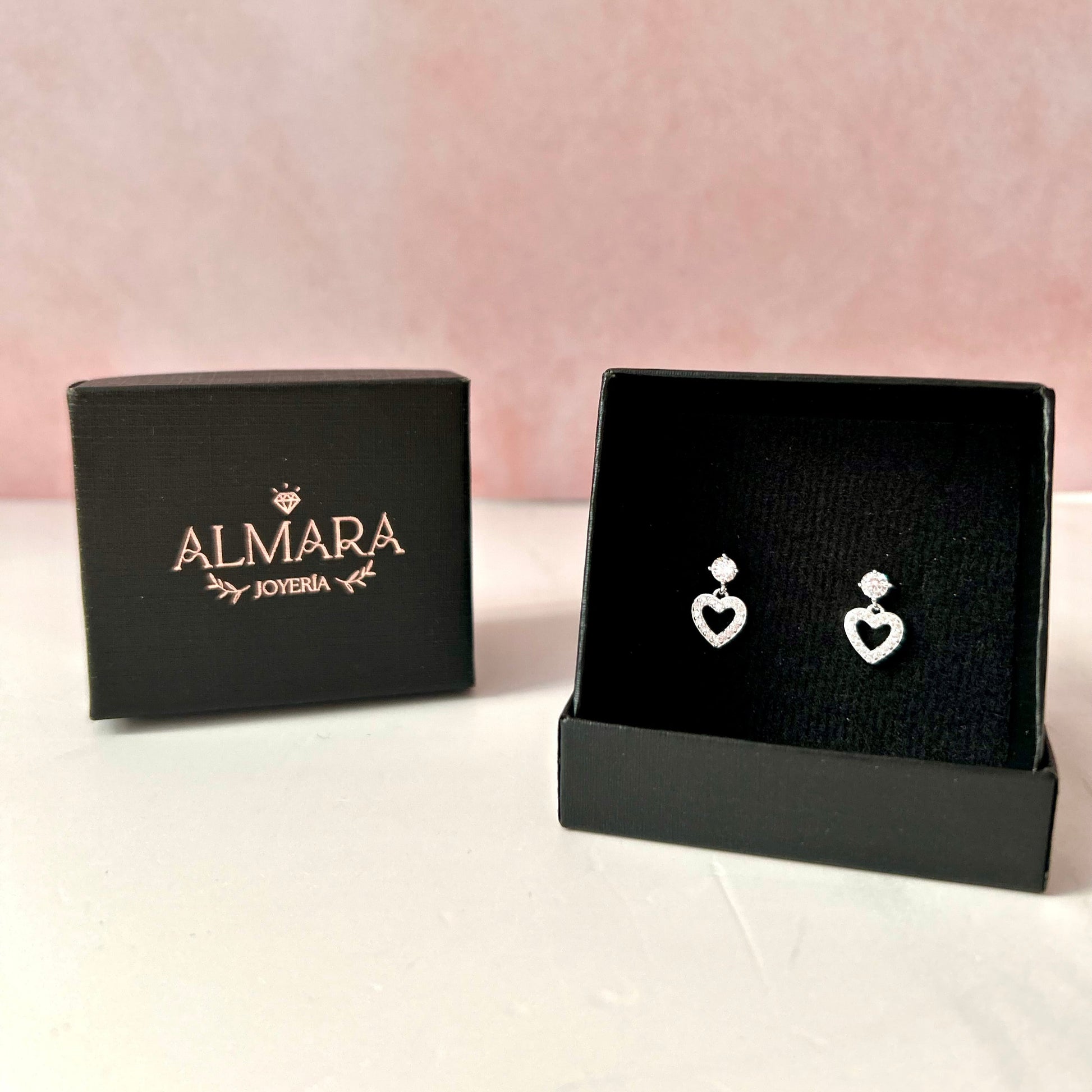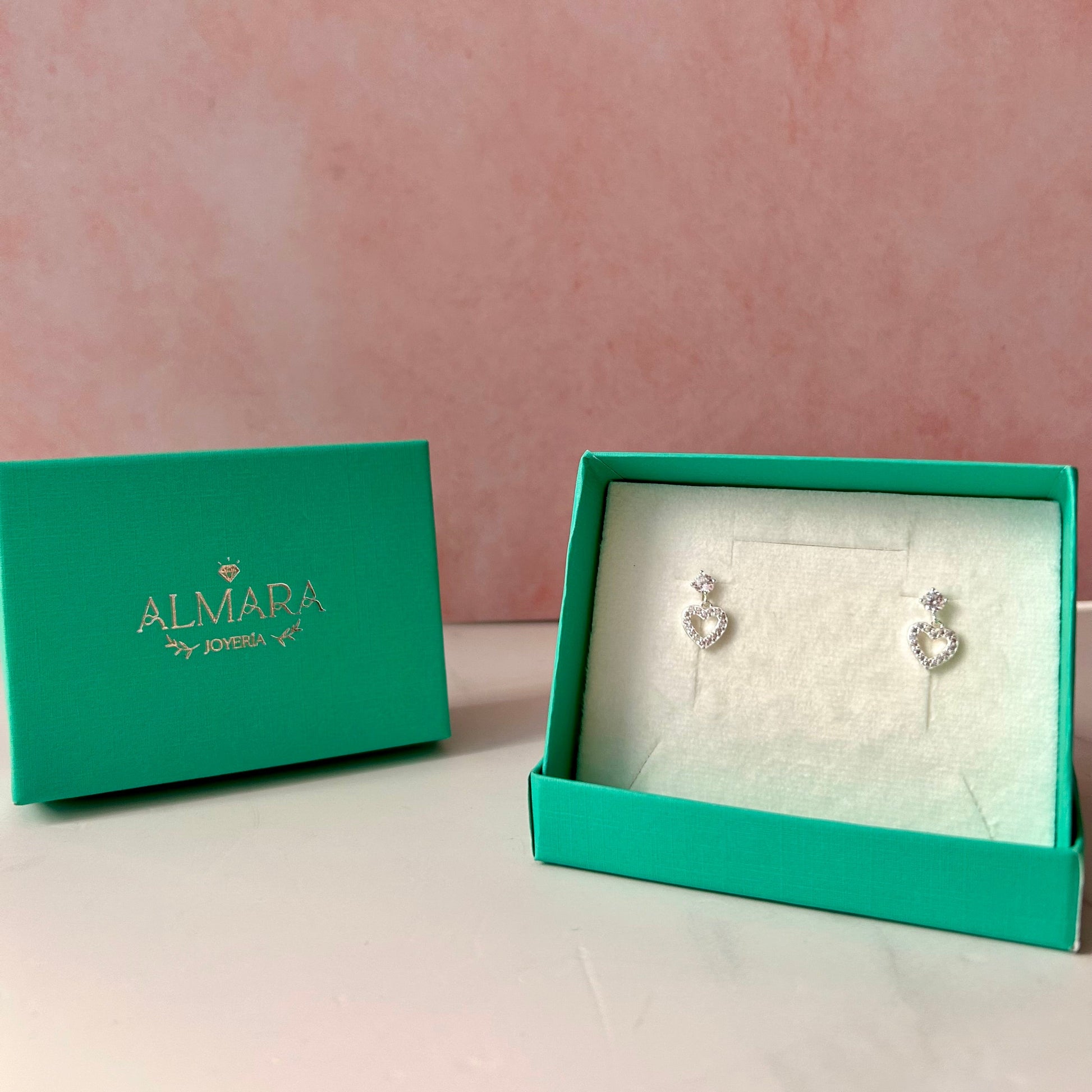 Hermosos aretes de plata en forma de corazón colgante con Zirconias.