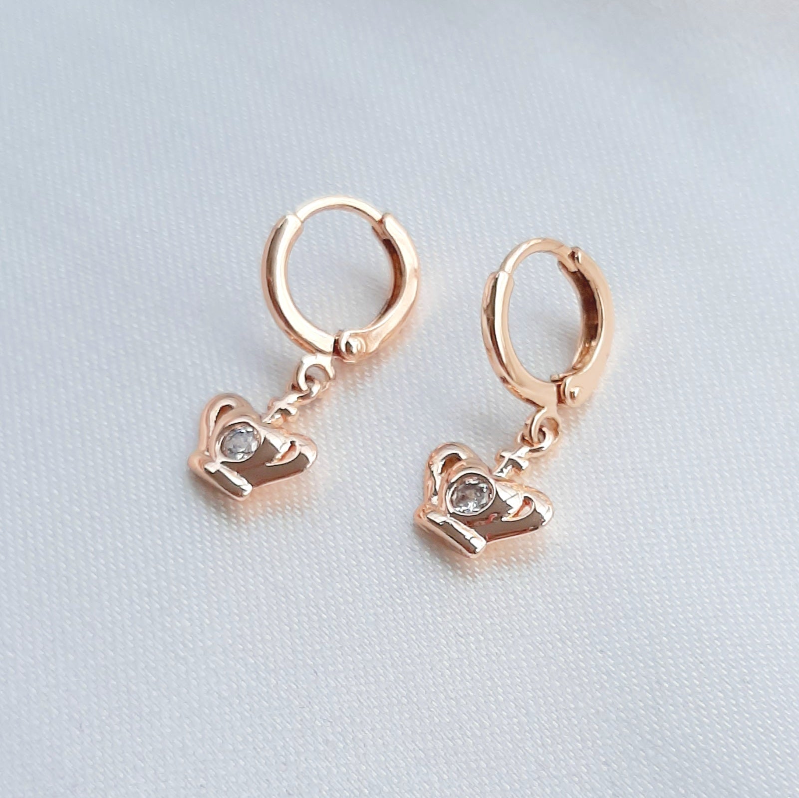 Aretes Huggies con Colgante de Corona de Oro Laminado