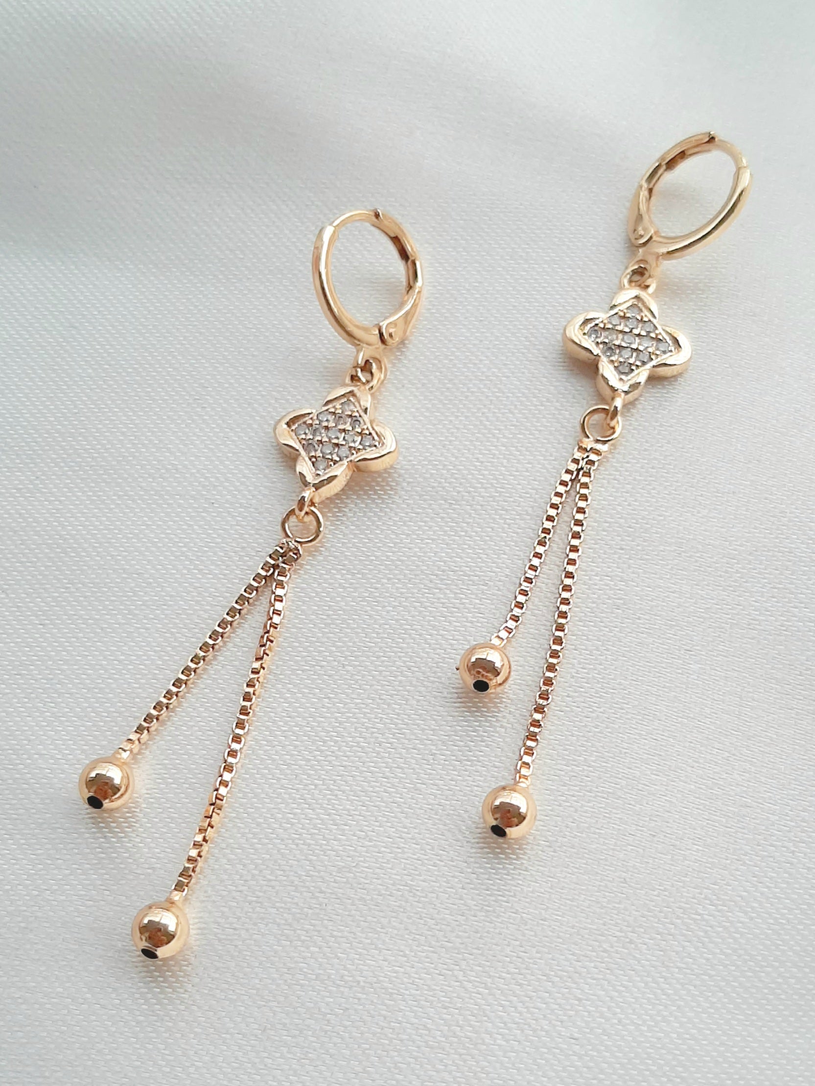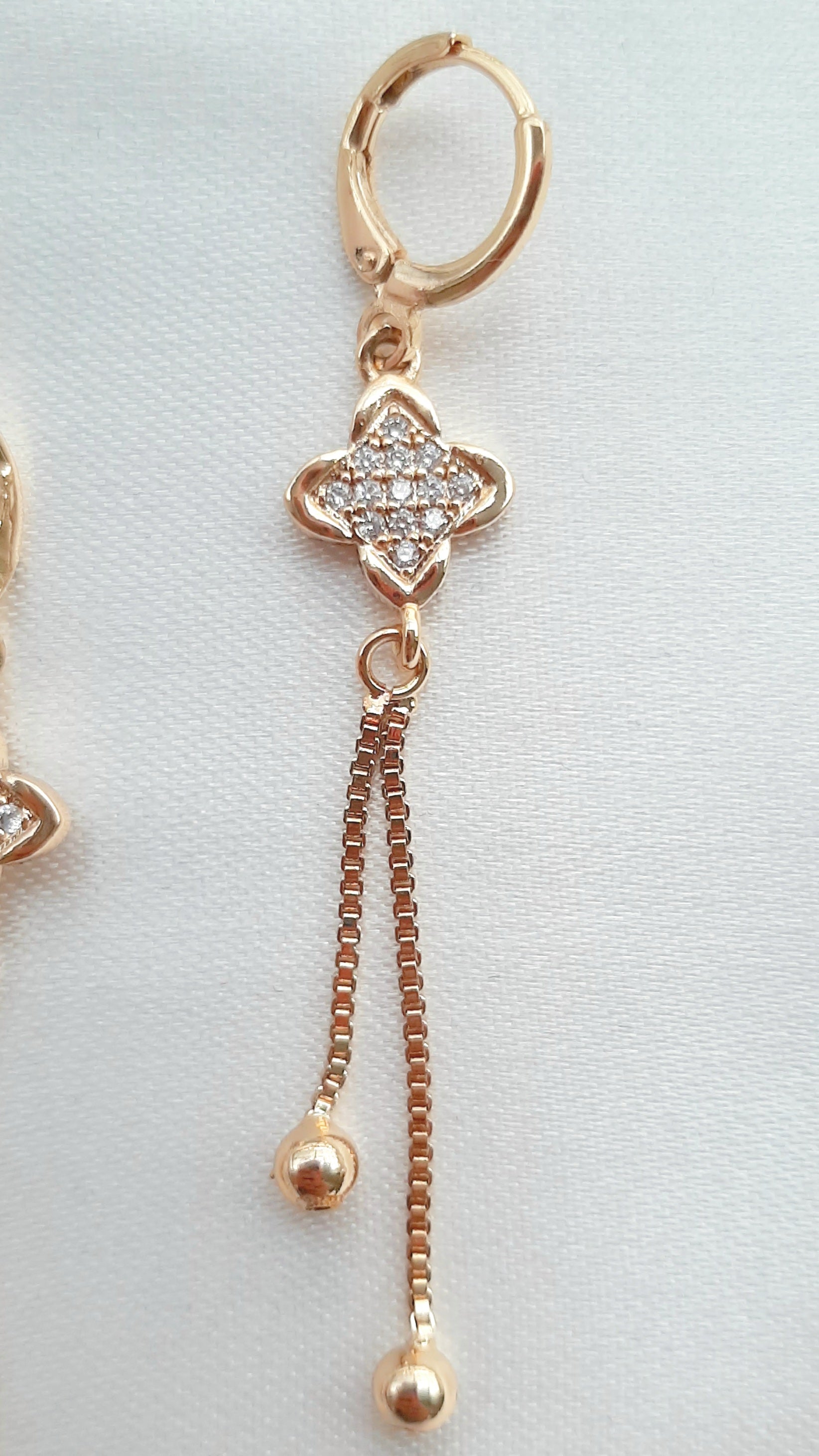 Aretes Huggies con Colgantes y Zirconias de Oro Laminado