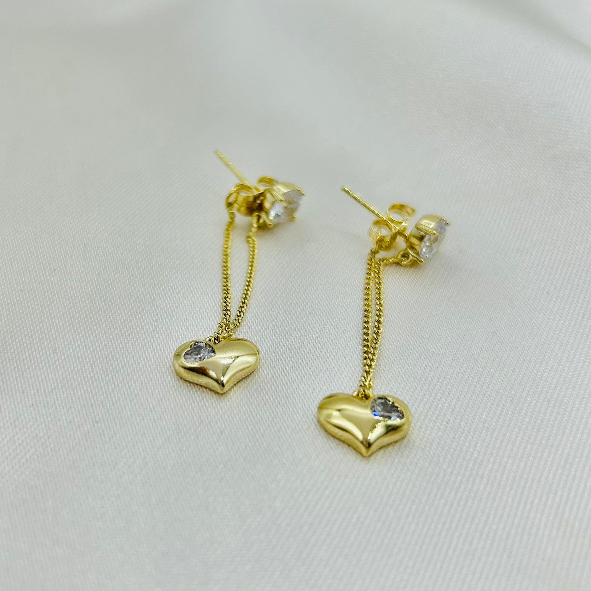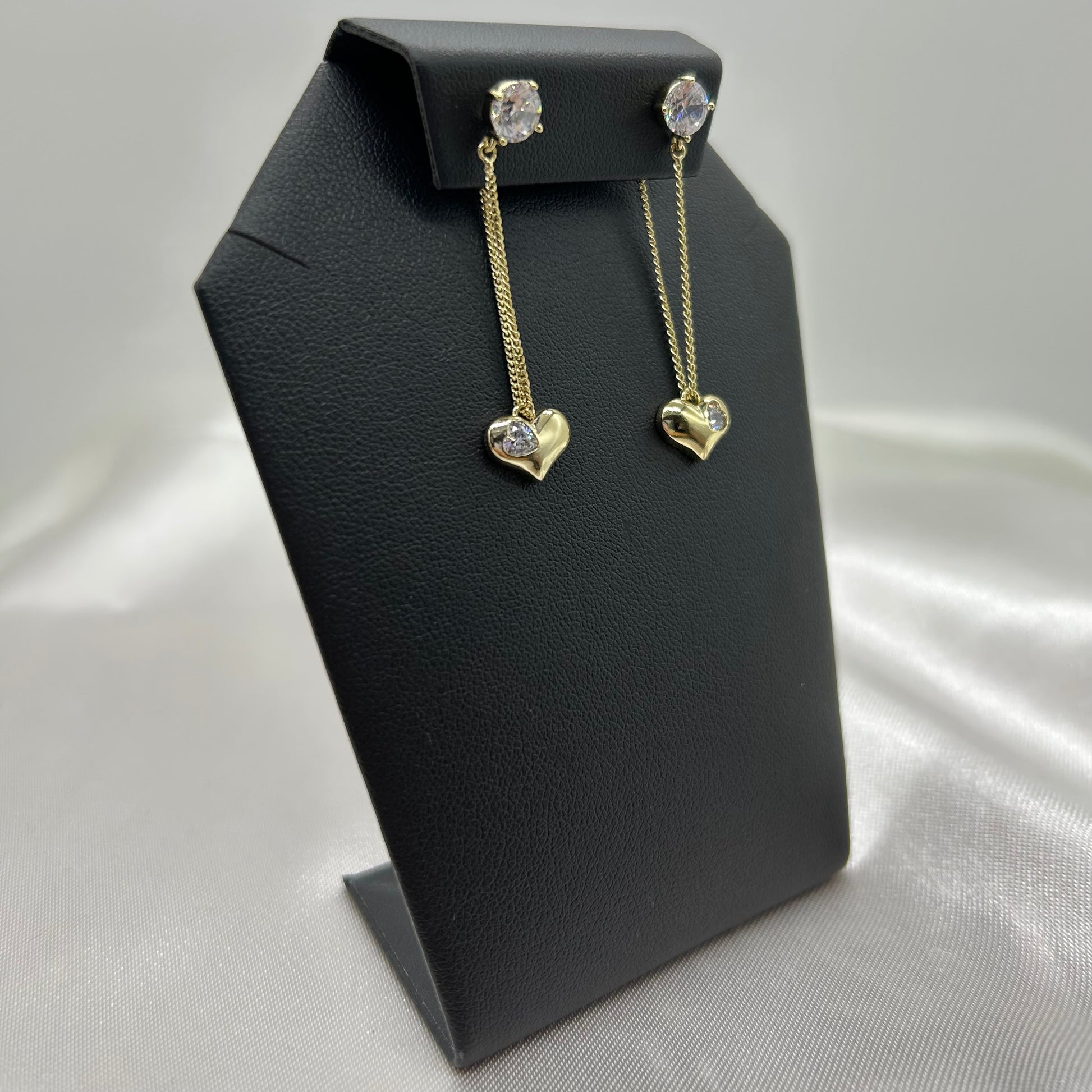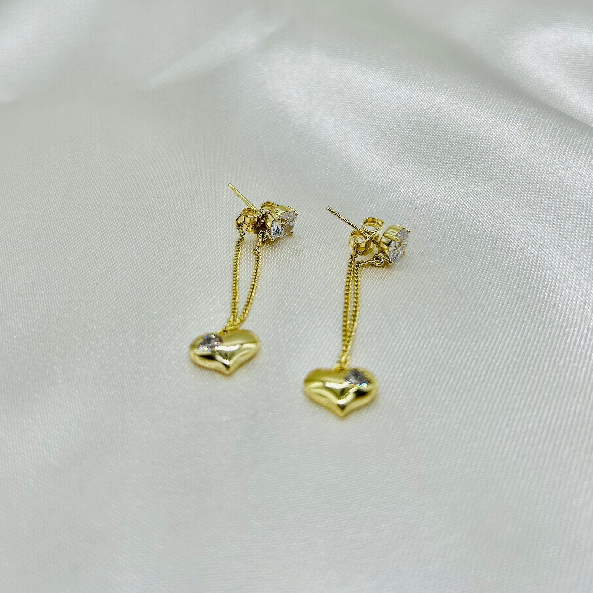 Aretes Largos de Corazón con Zirconia de Oro Laminado