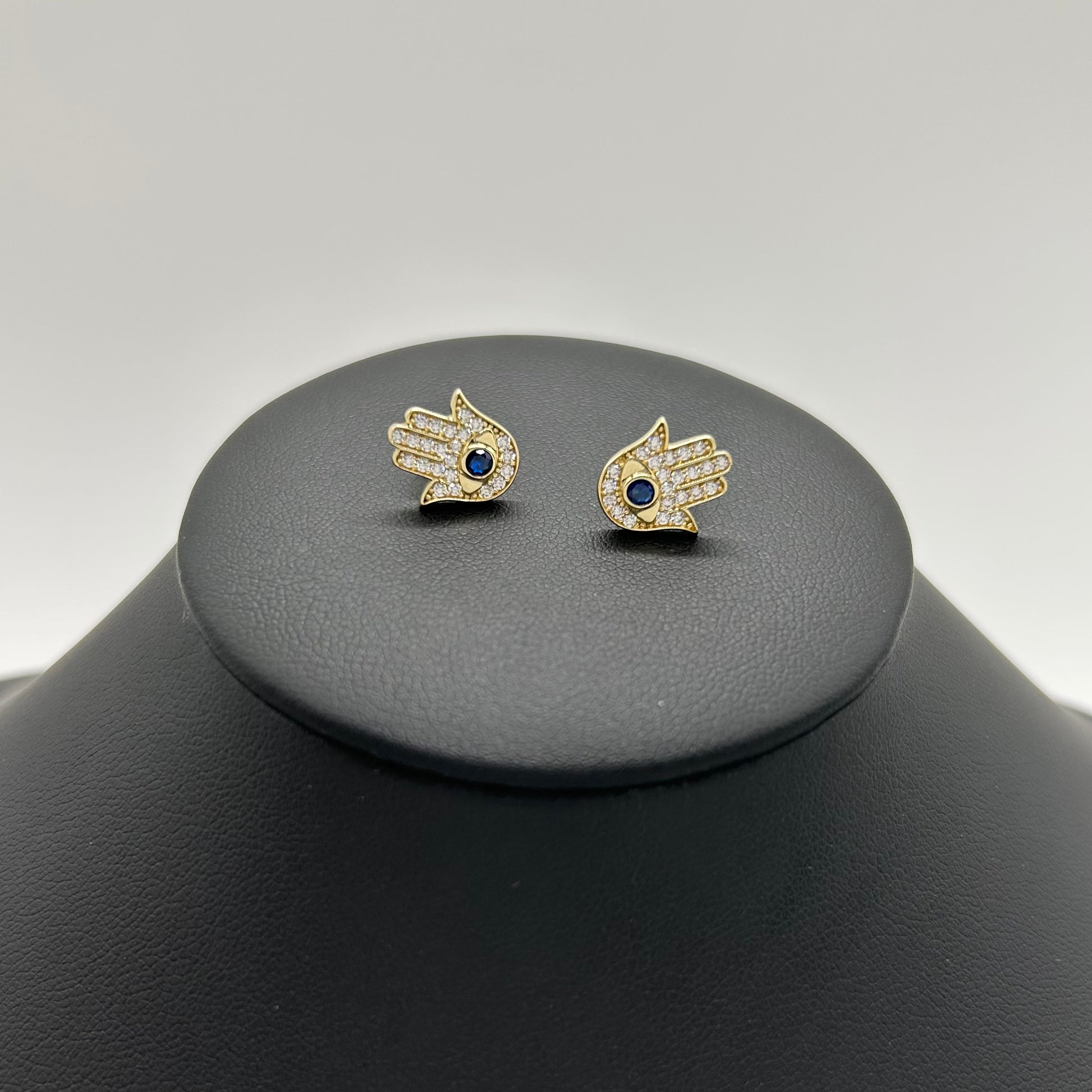 ¡Lúcete con estos divertidos aretes de oro 10K! Sus manitas de Fátima te protegerán y atraerán buena suerte. Perfectos para cualquier ocasión, ¡son el complemento ideal para tu estilo único y divertido!