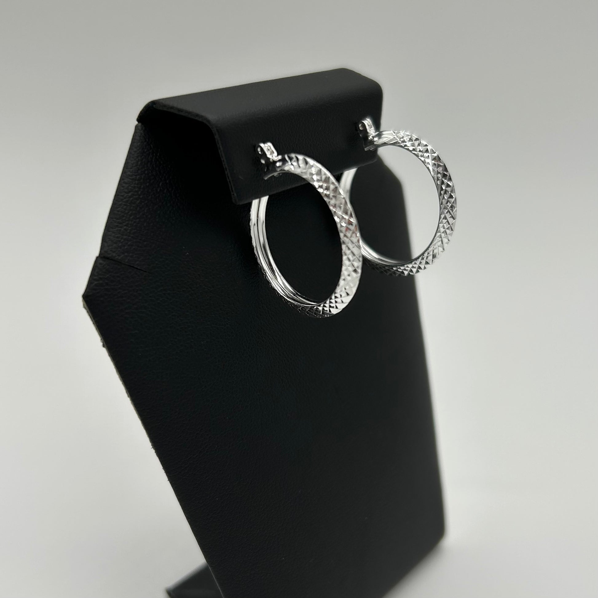 Arracadas con Diseño Diamantado con Líneas en Plata