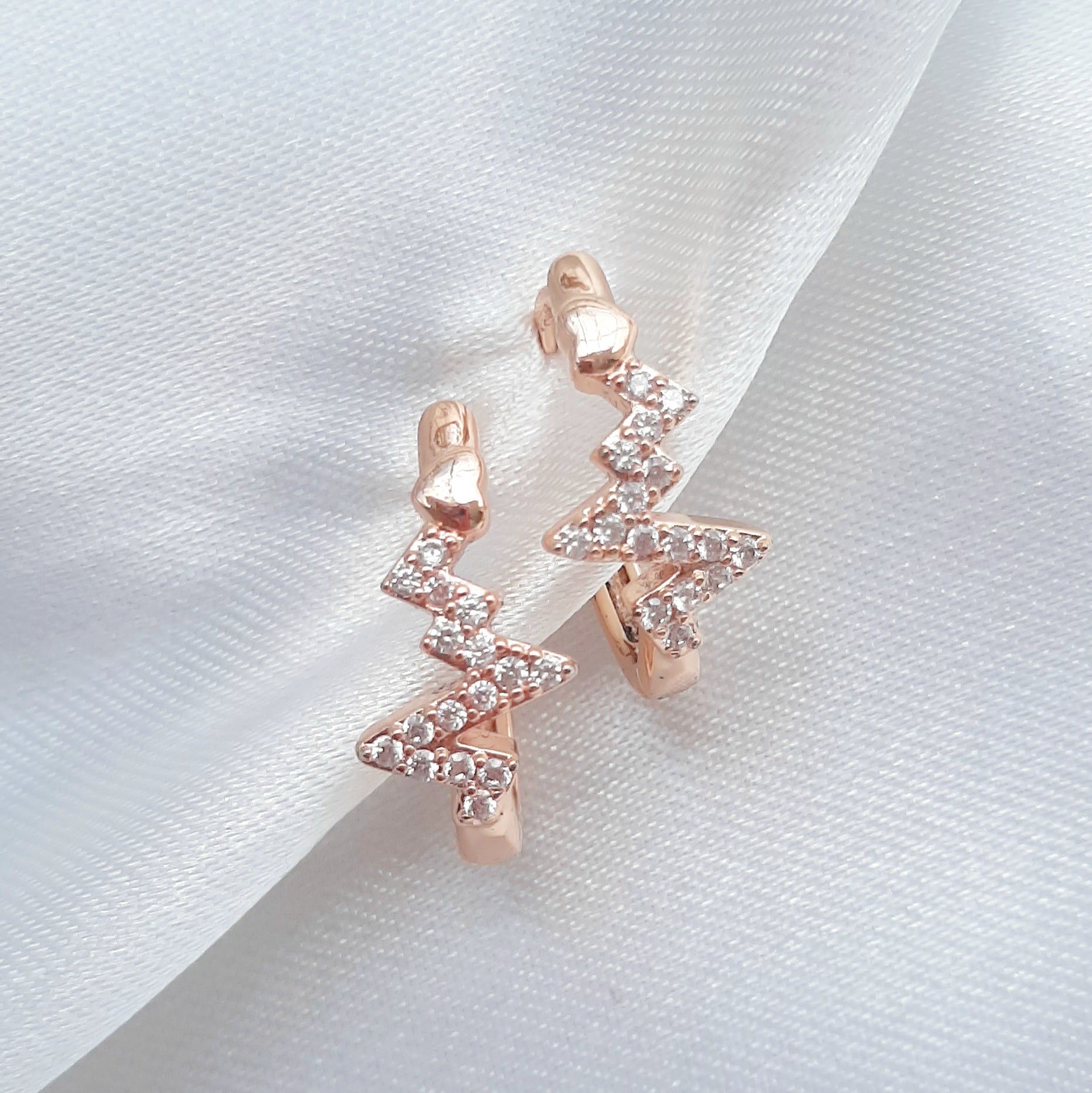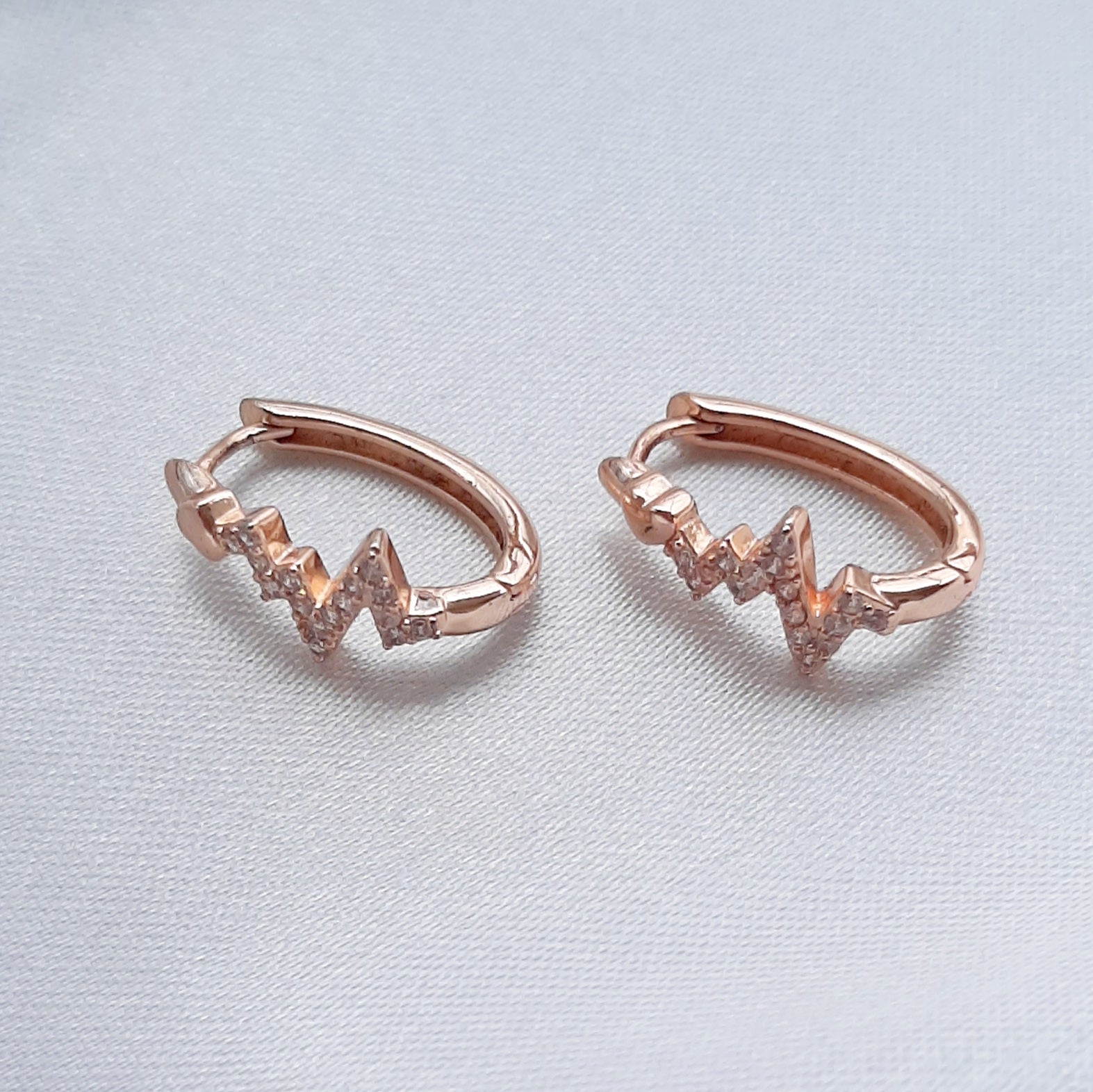 Hermosas arracadas con diseño de ritmo cardiaco, adornadas con zirconas, discretas y elegantes en cualquier momento.