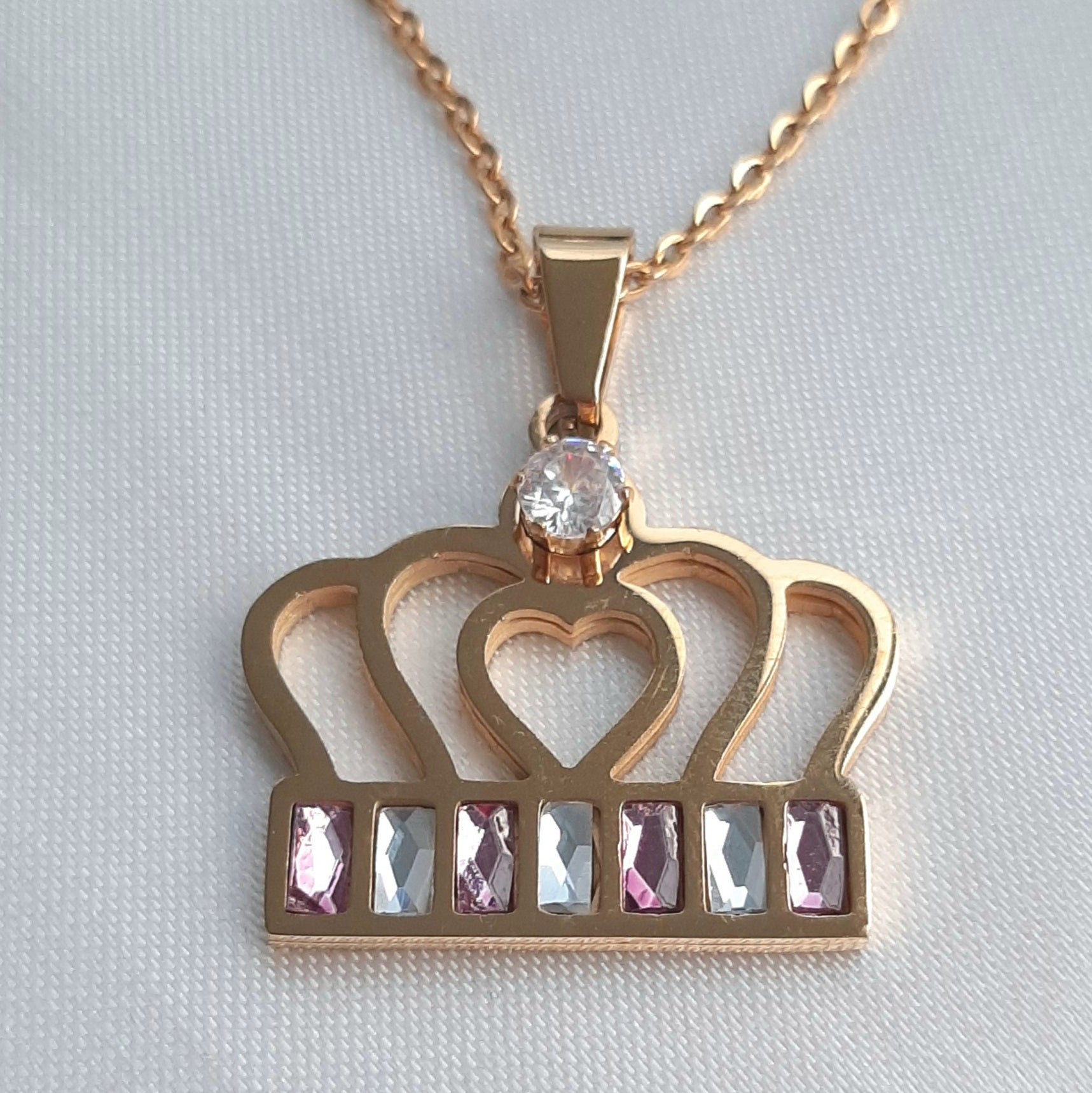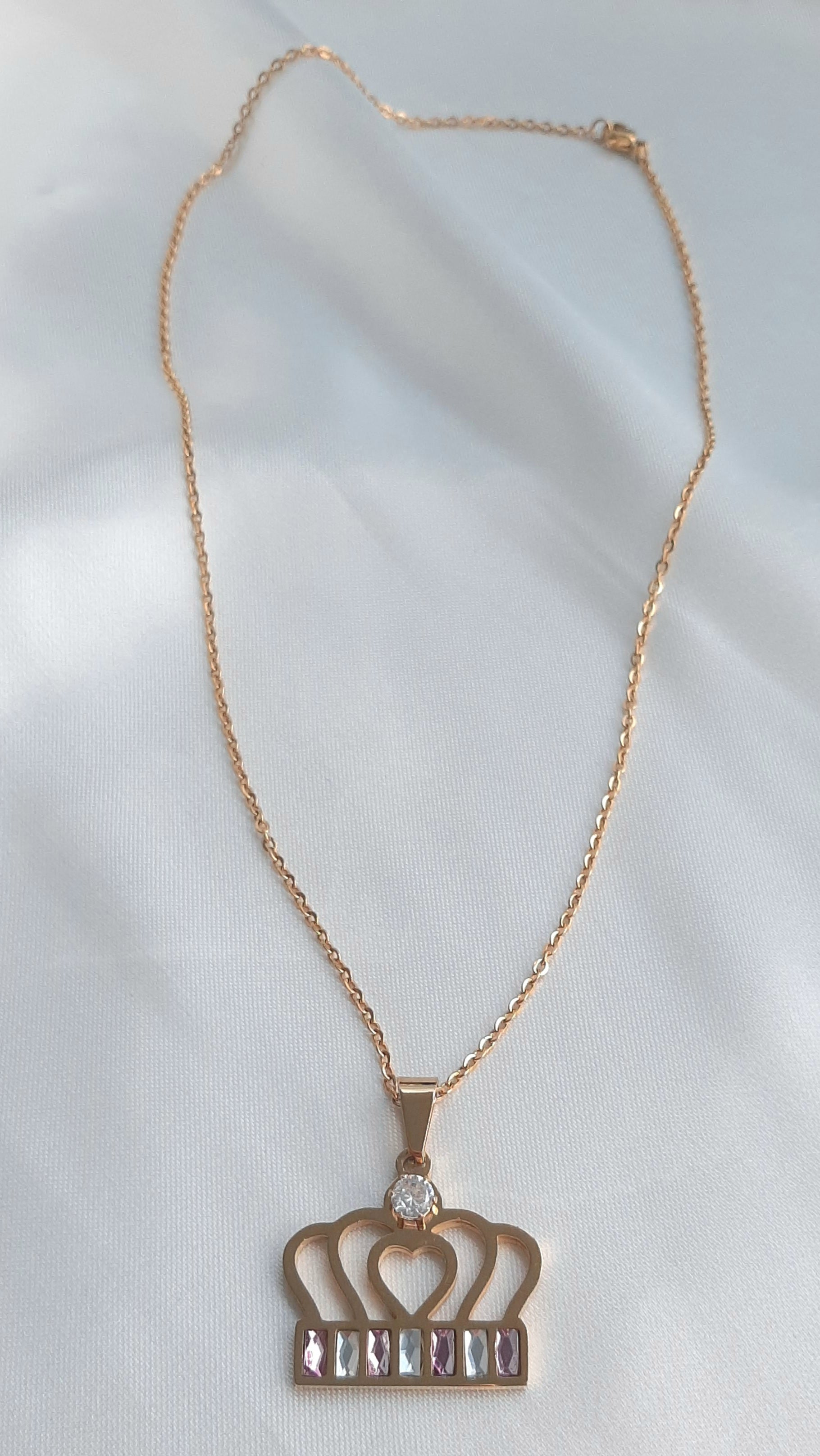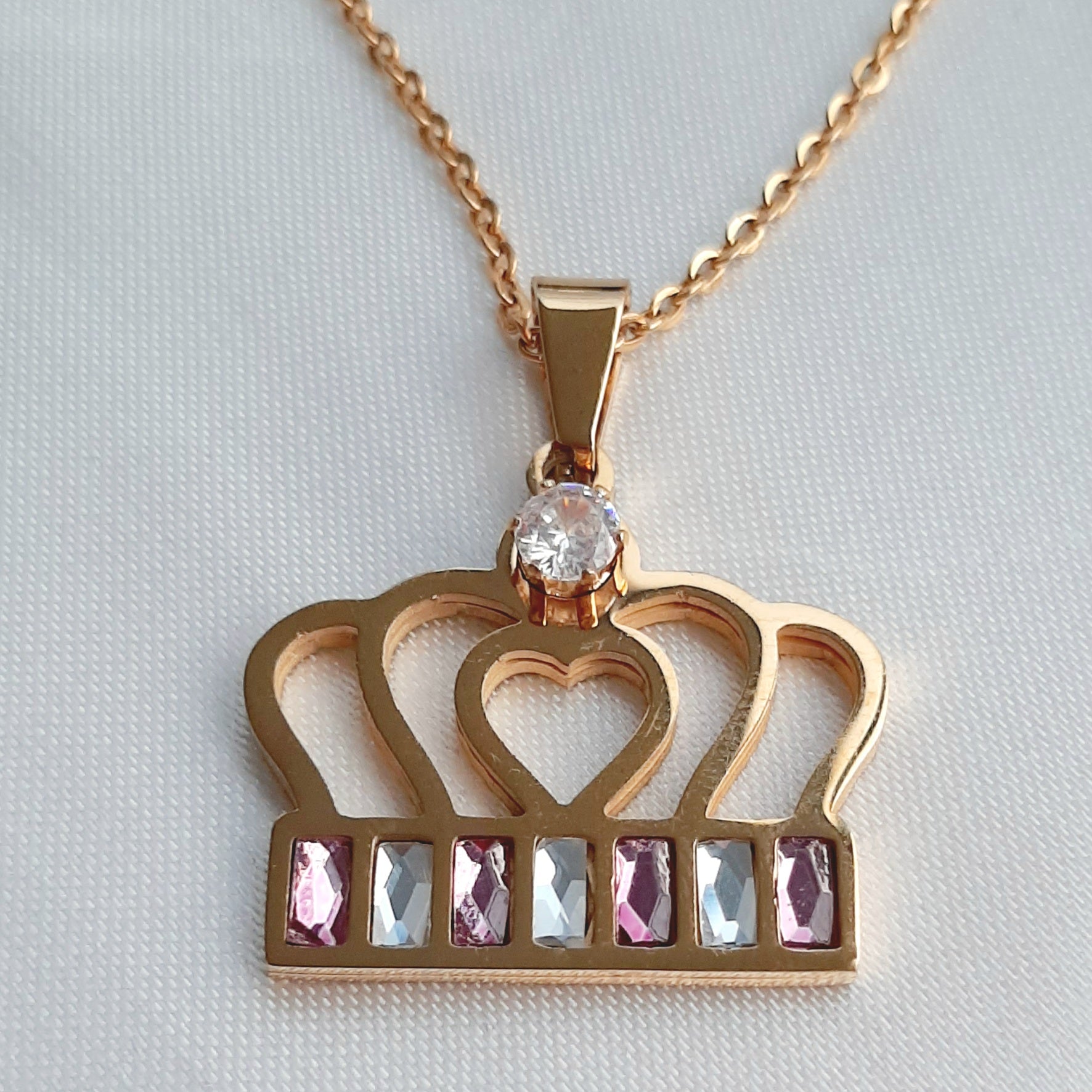 Hermoso collar de acero inoxidable, con dije de corona e incrustaciones de zirconia, elegante en cualquier ocasión, para realzar tu princesa interior.