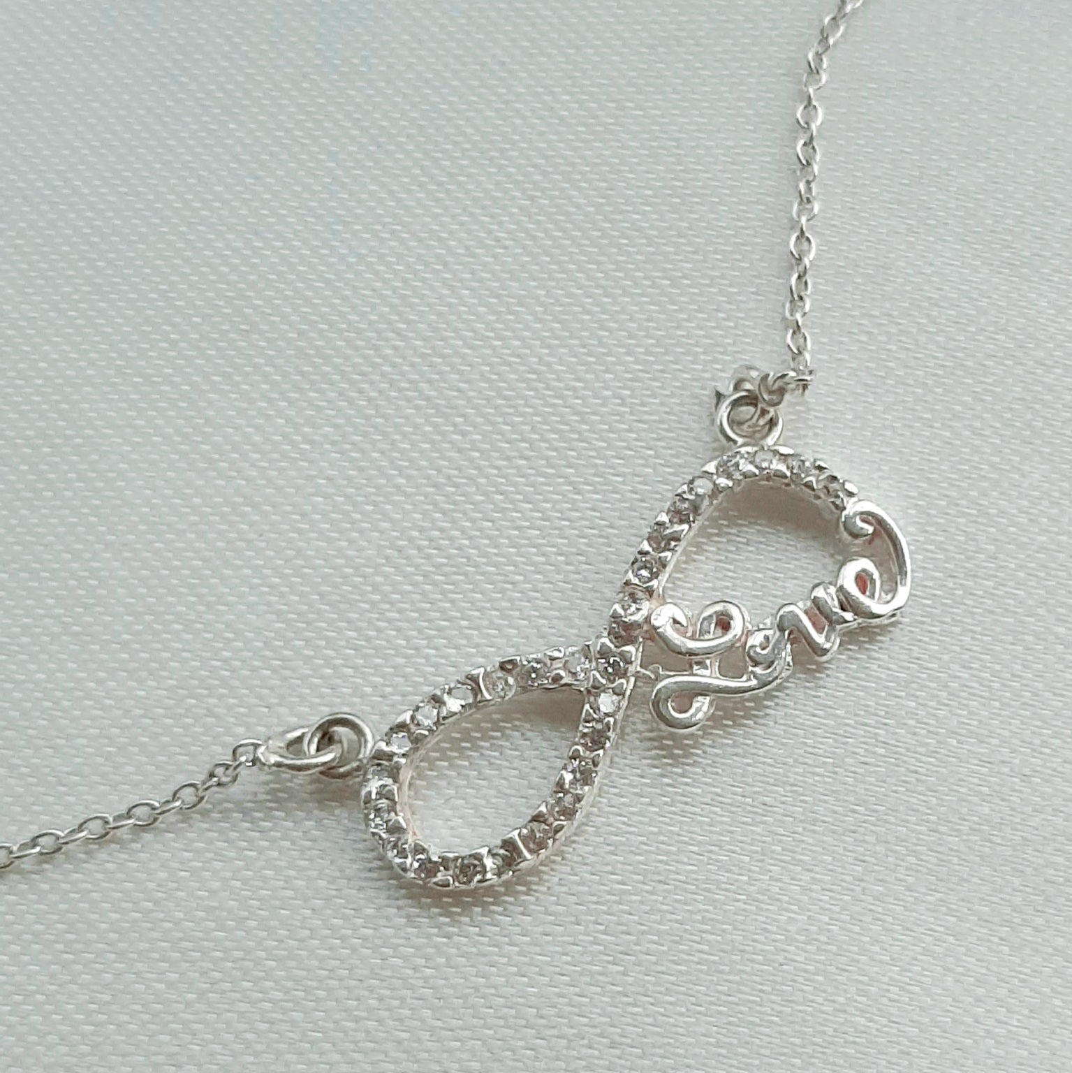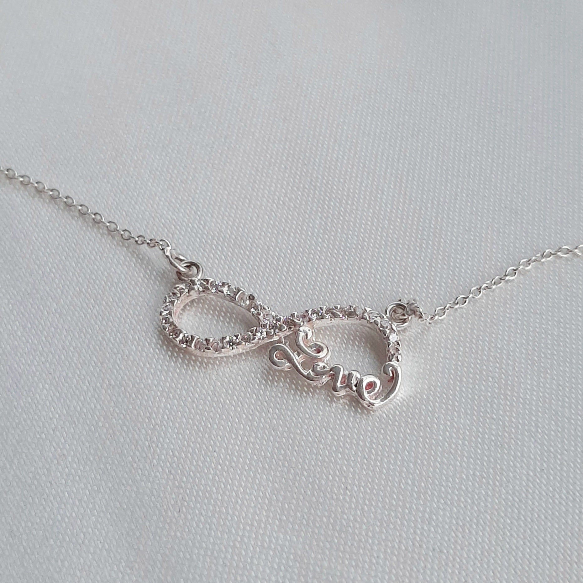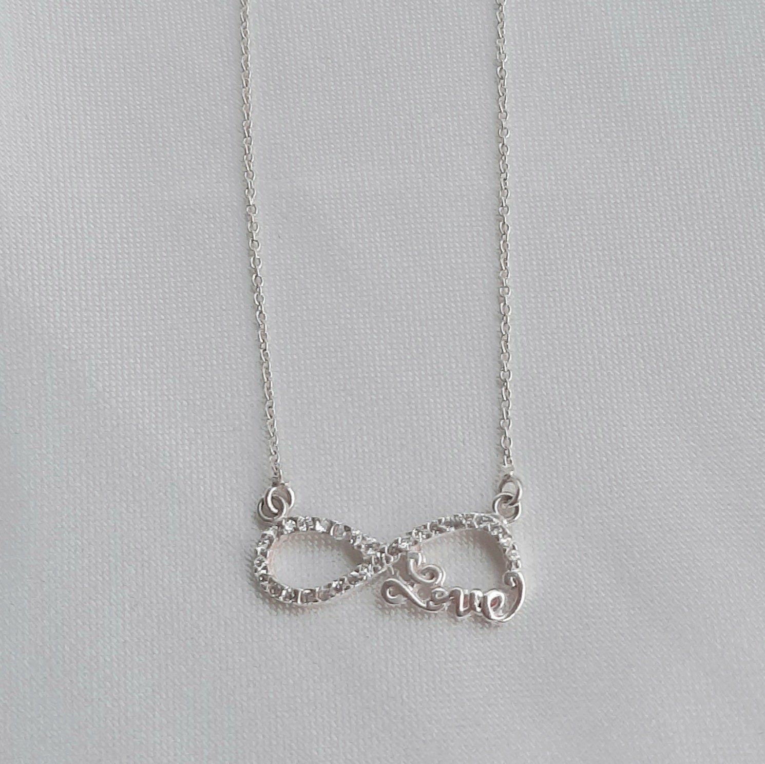 Hermoso collar con dije en forma de infinito con incrustaciones de circonitas, para demostrar tu amor infinito, elegante con cualquier look.