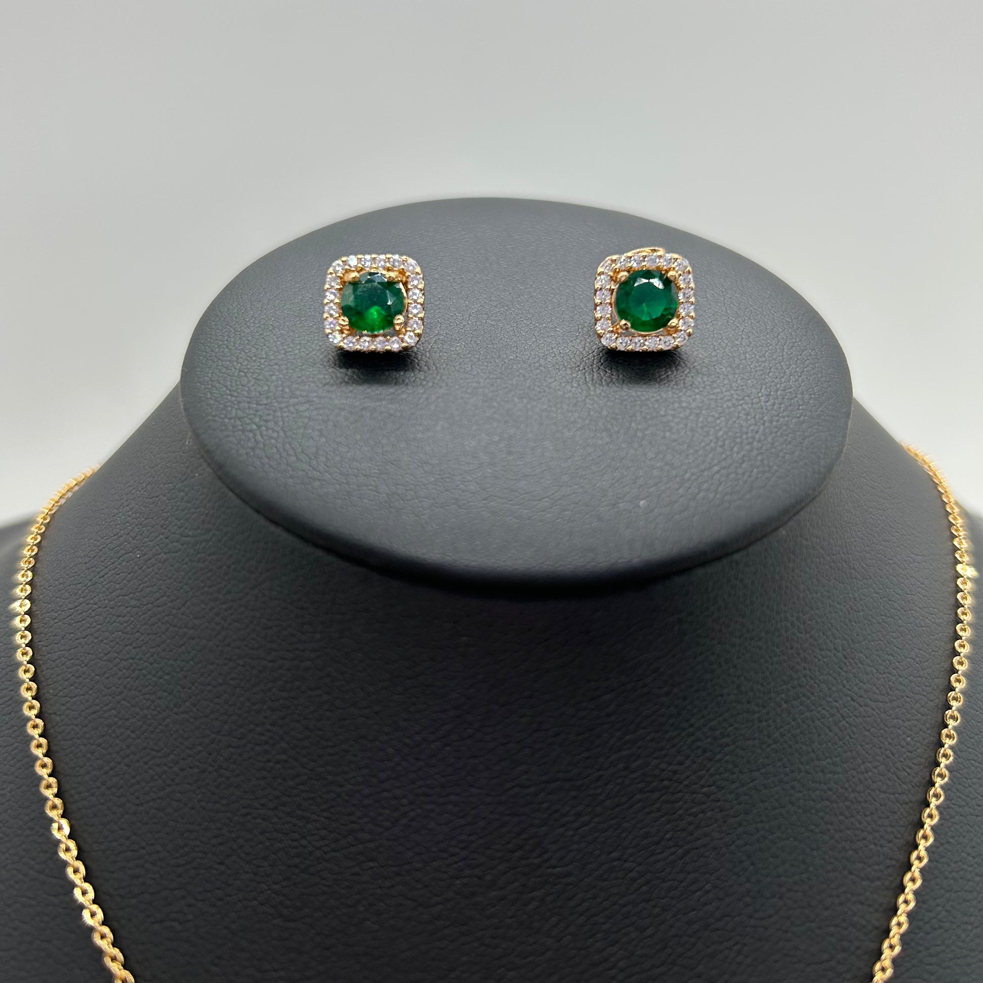 Conjunto Collar y Aretes de Oro Laminado con Zirconias Verdes