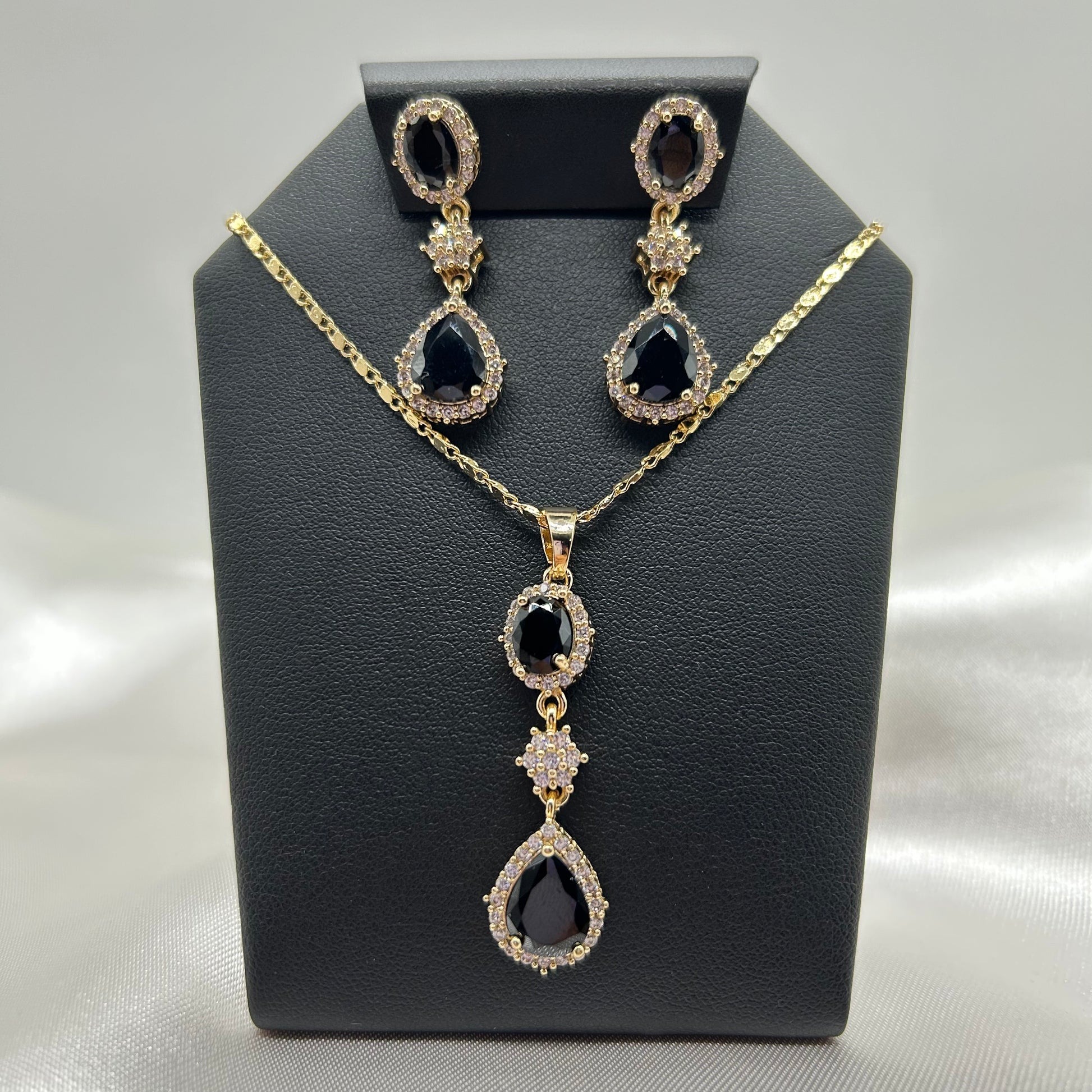 Conjunto Collar y Aretes de Zirconias Negras de Oro Laminado