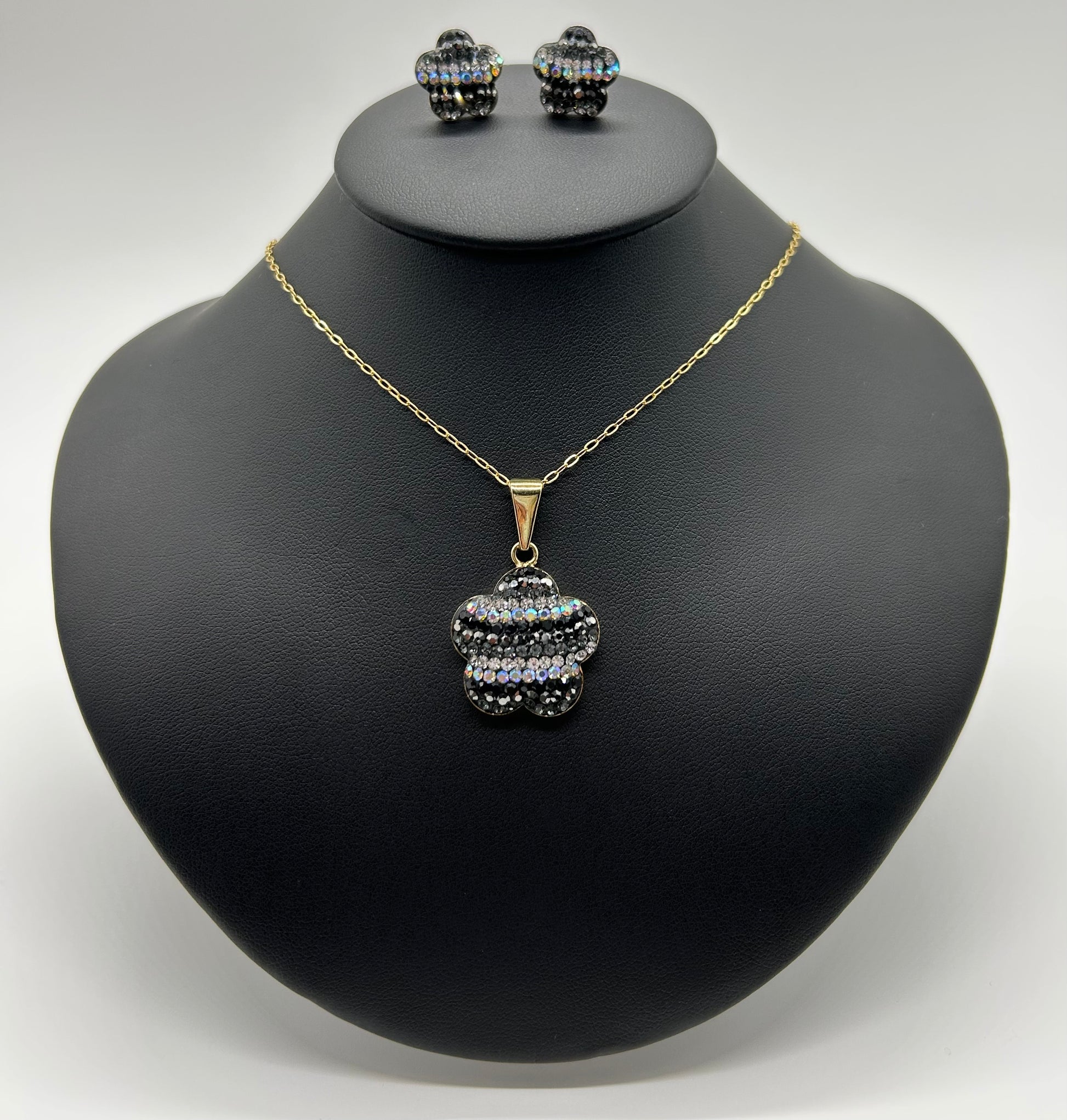 Conjunto de Flores Negro com Gris de Oro Laminado