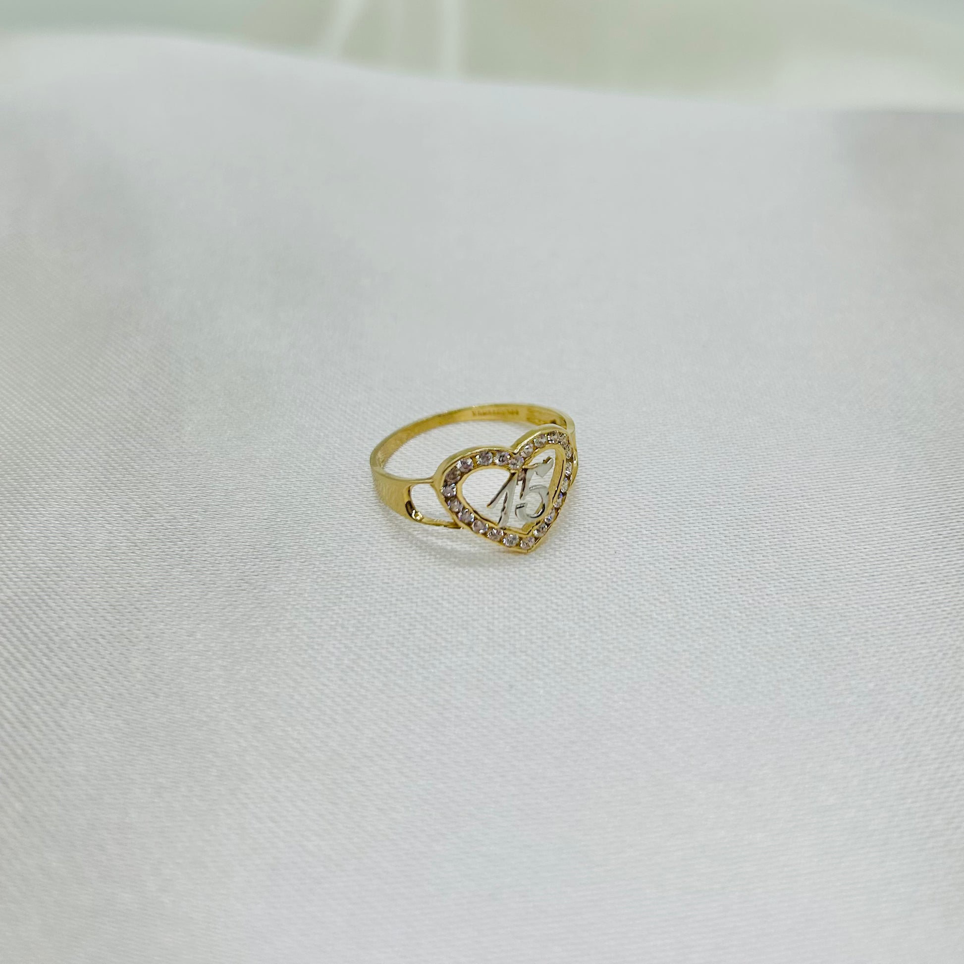 Anillo 15 Años Diseño de Corazón con Zirconias Oro 14k
