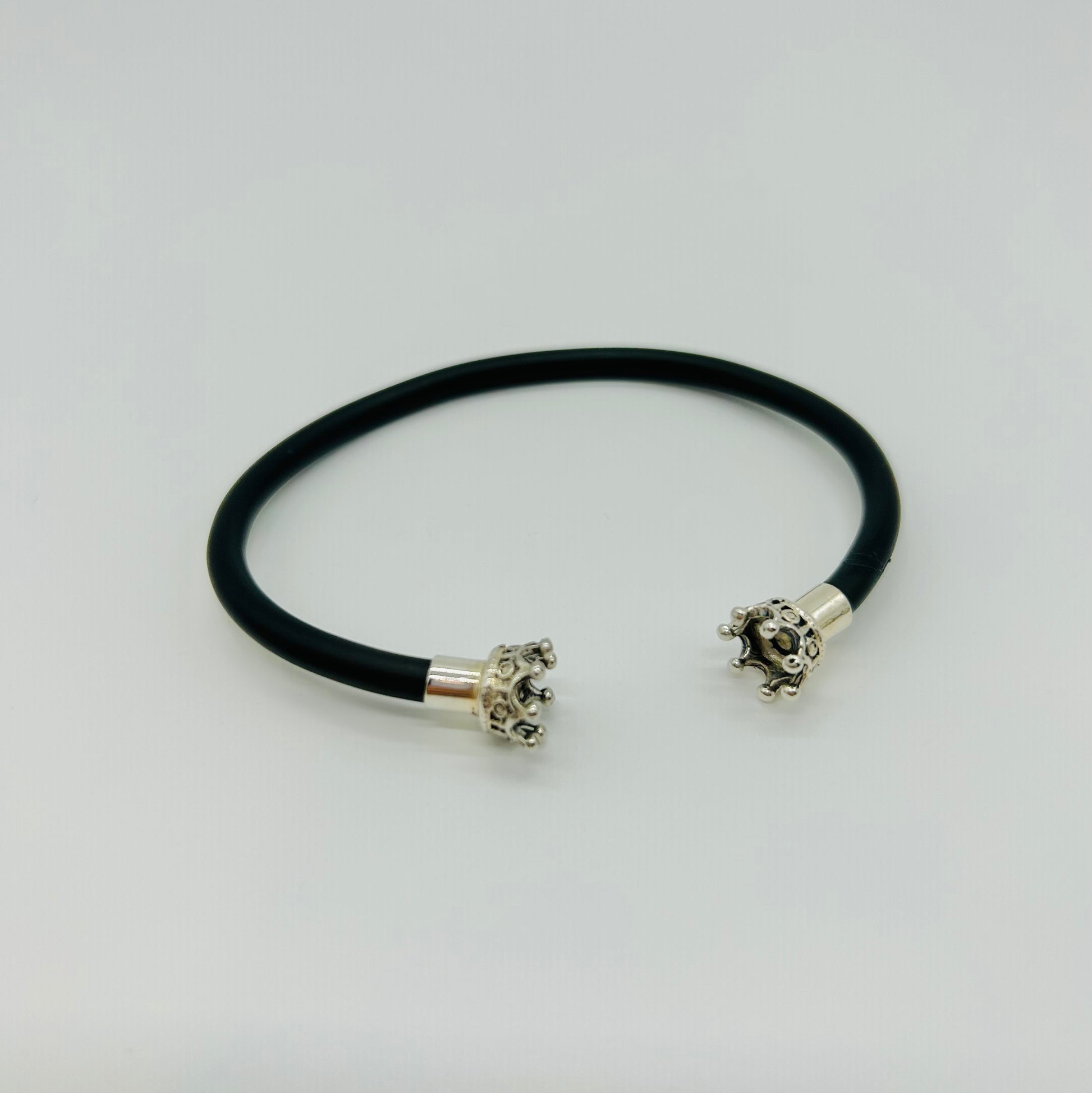 Elegante pulsera rígida adornada con coronas de plata, perfecta para uso diario.
