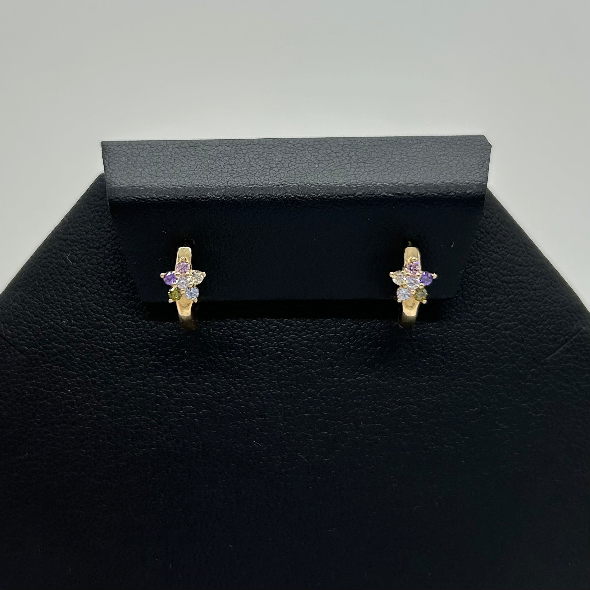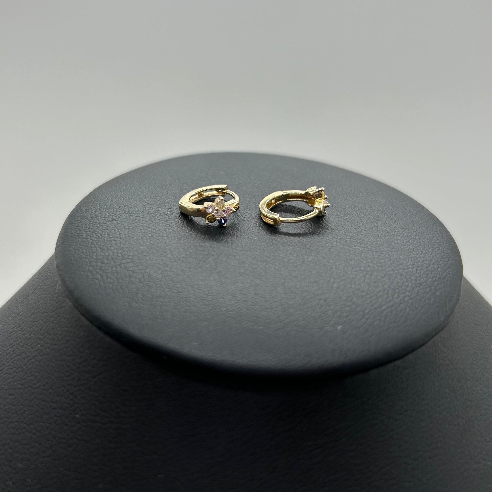 Hermosos huggies de zirconias en forma de flor en oro de 14K
