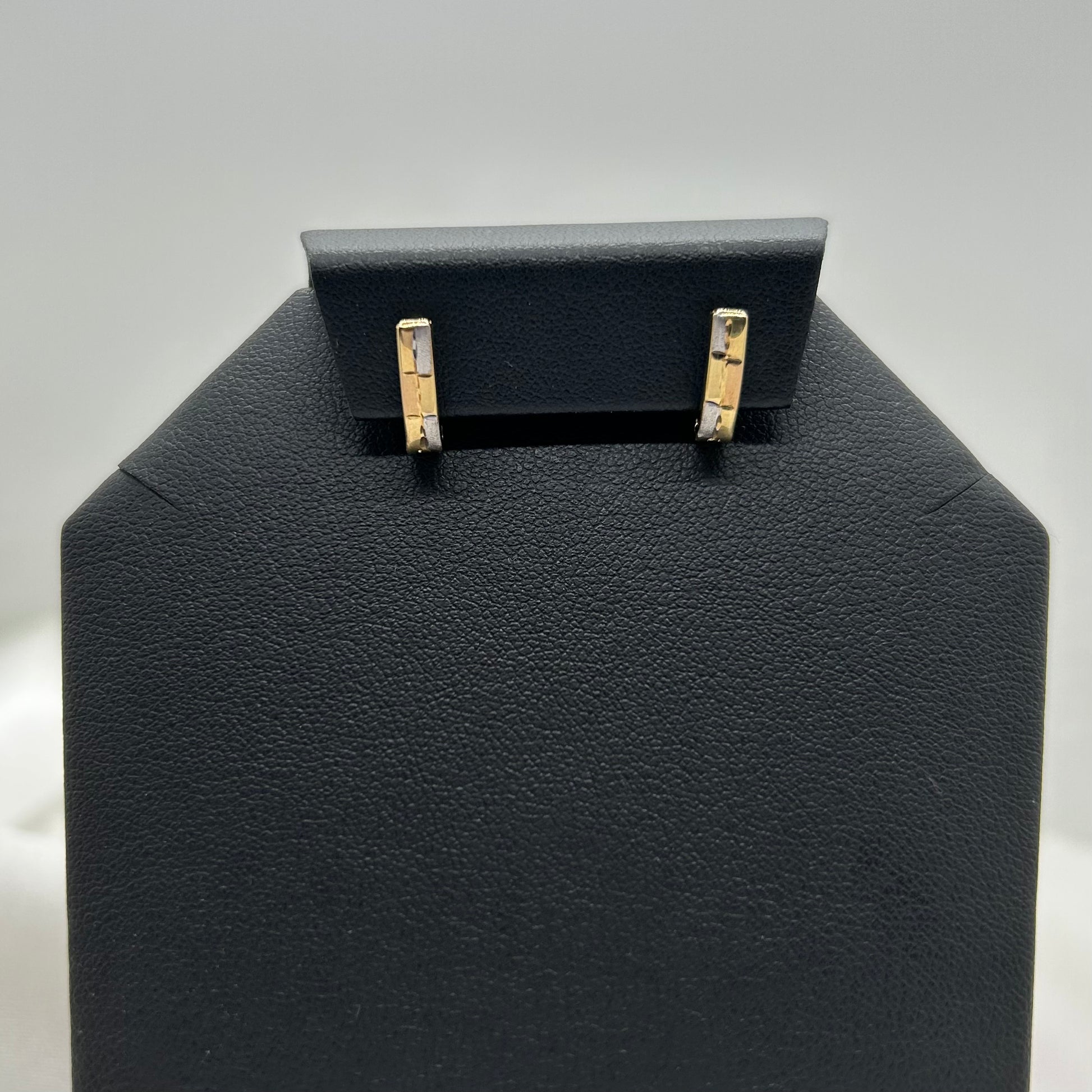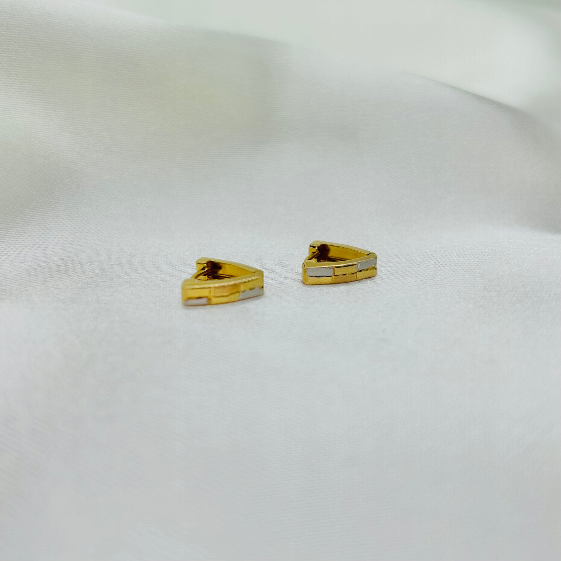 Hermosas huggies de tríangulo diamantado con hermoso diseño juvenil en tres oros de 14K