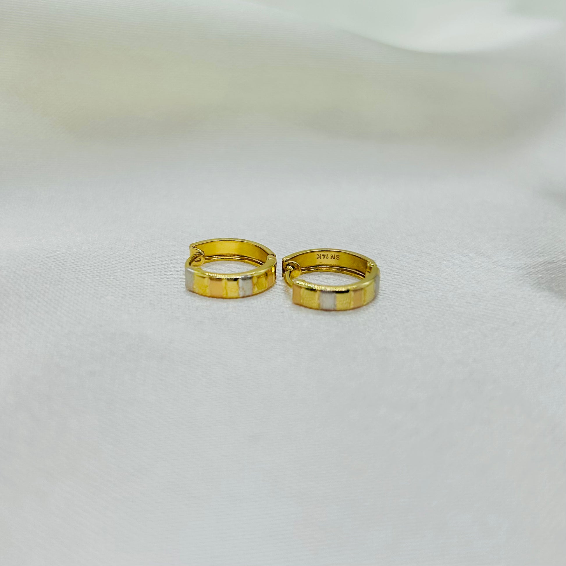 Huggies Diamantadas de Líneas en Tres Oros de 14K