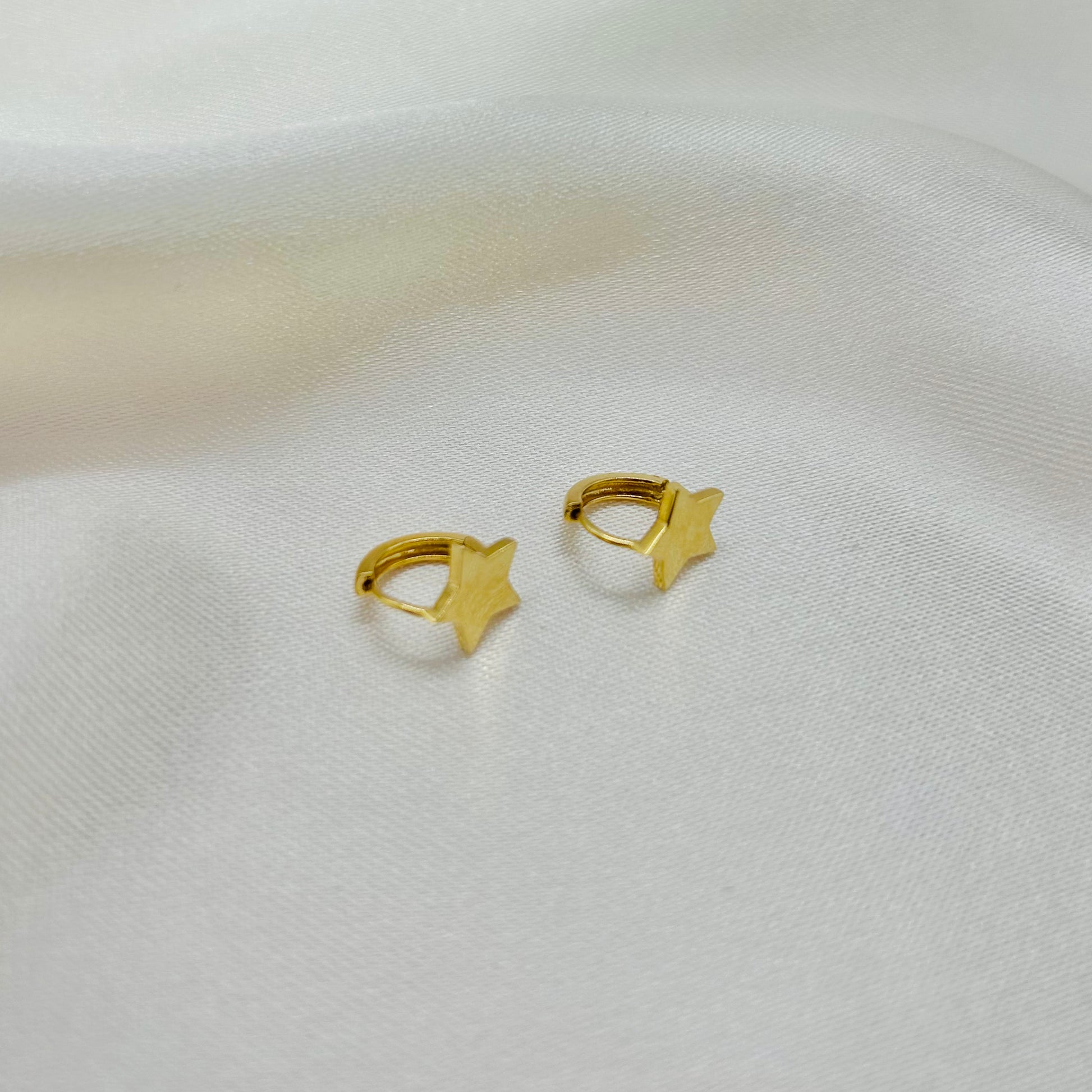 Hermosas huggies en forma de estrella en oro amarillo de 14K