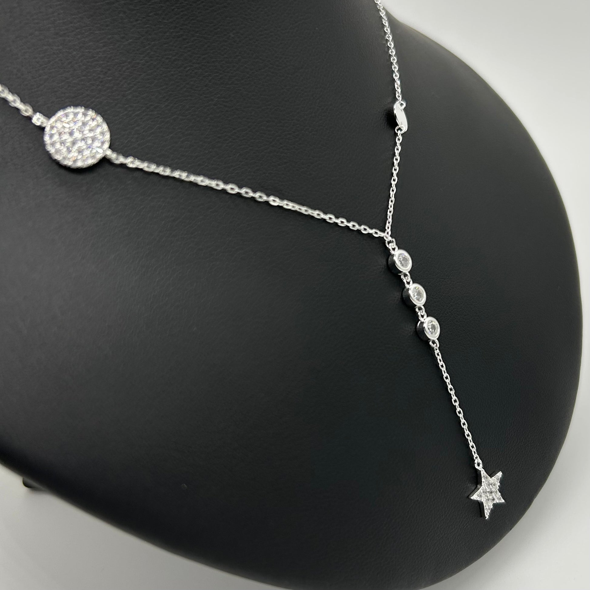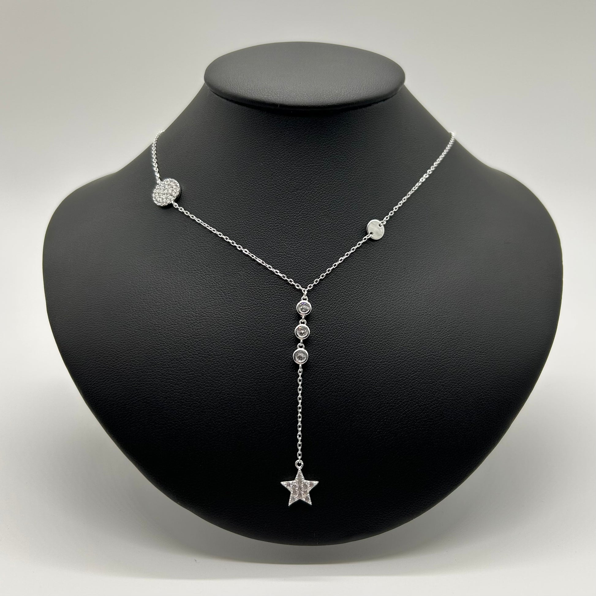 Collar Tipo Corbatín de Círculos y Estrella de Plata