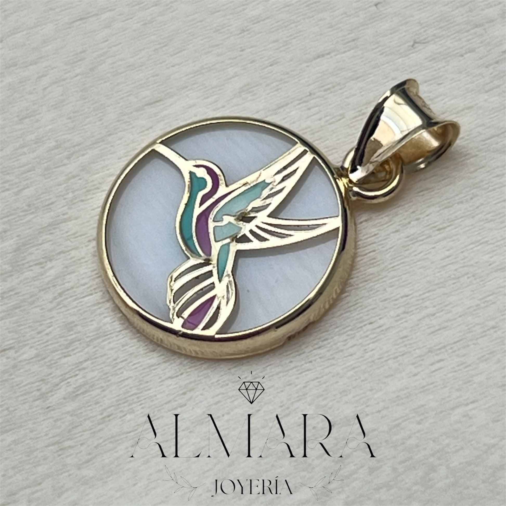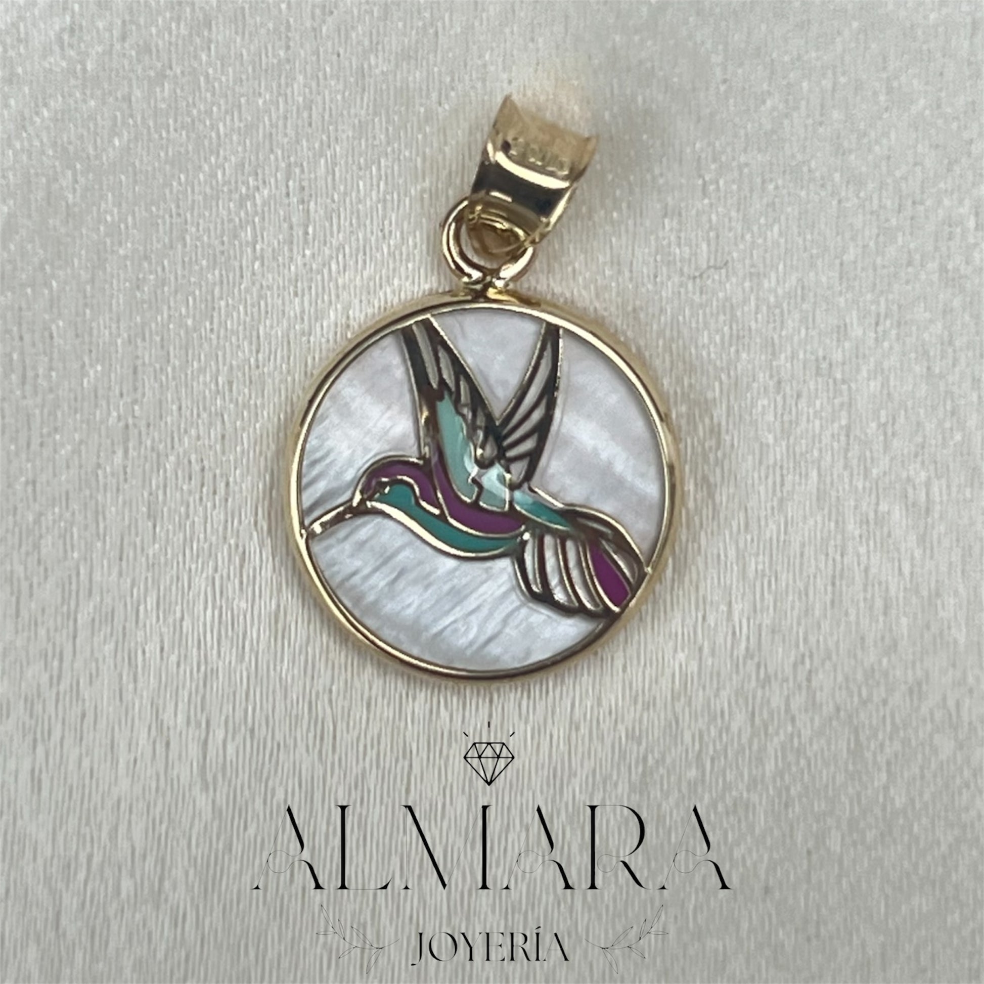 Dije Colibrí Con Piedra Concha Nácar y Oro 10K