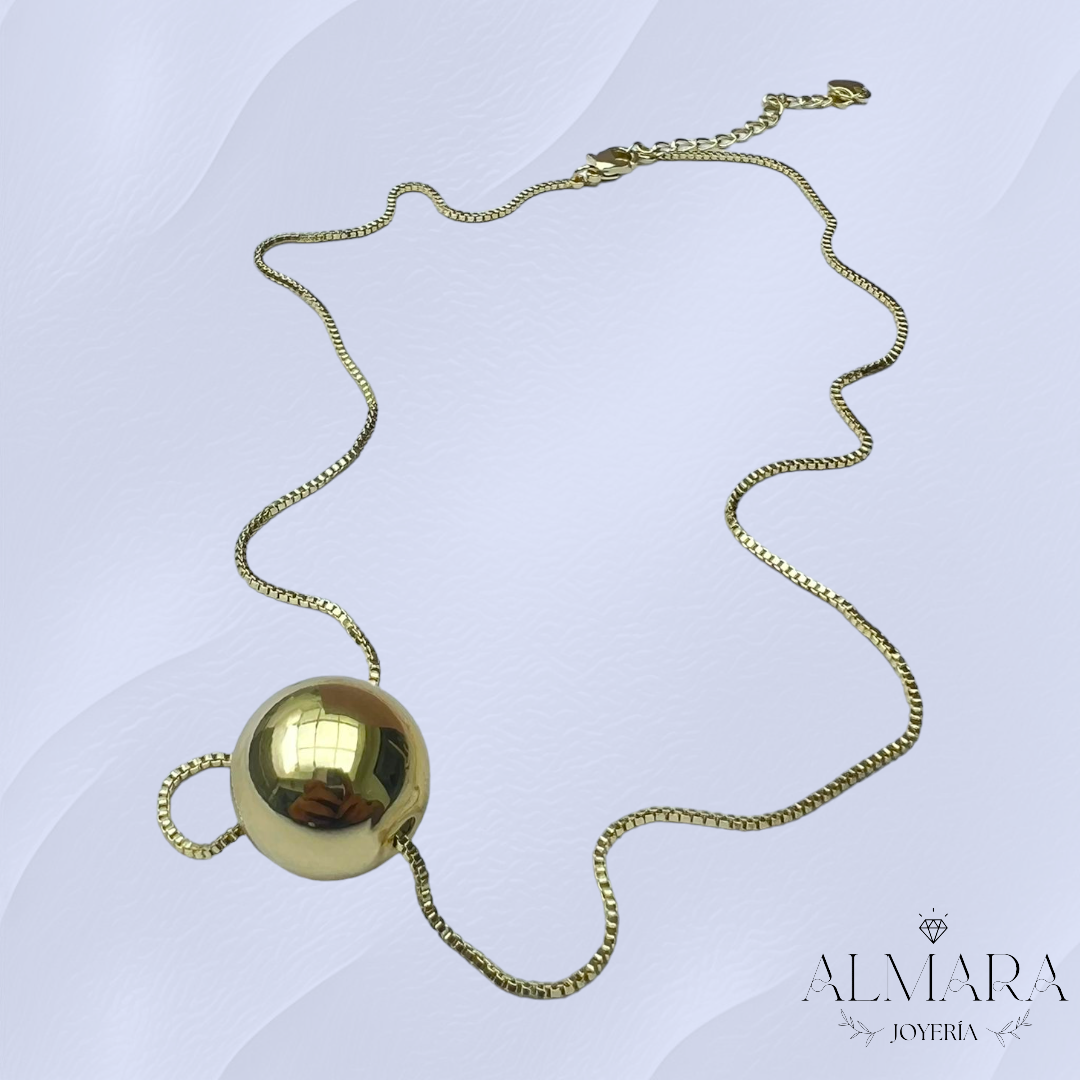 ¡Luce elegante y sofisticada con nuestra Gargantilla con Dije de Bola de oro laminado! Esta hermosa pieza de joyería es el complemento perfecto para cualquier atuendo, añadiendo un toque de brillo y estilo a tu look. Hecho con material de alta calidad y un diseño atemporal, ¡será tu accesorio favorito por años!