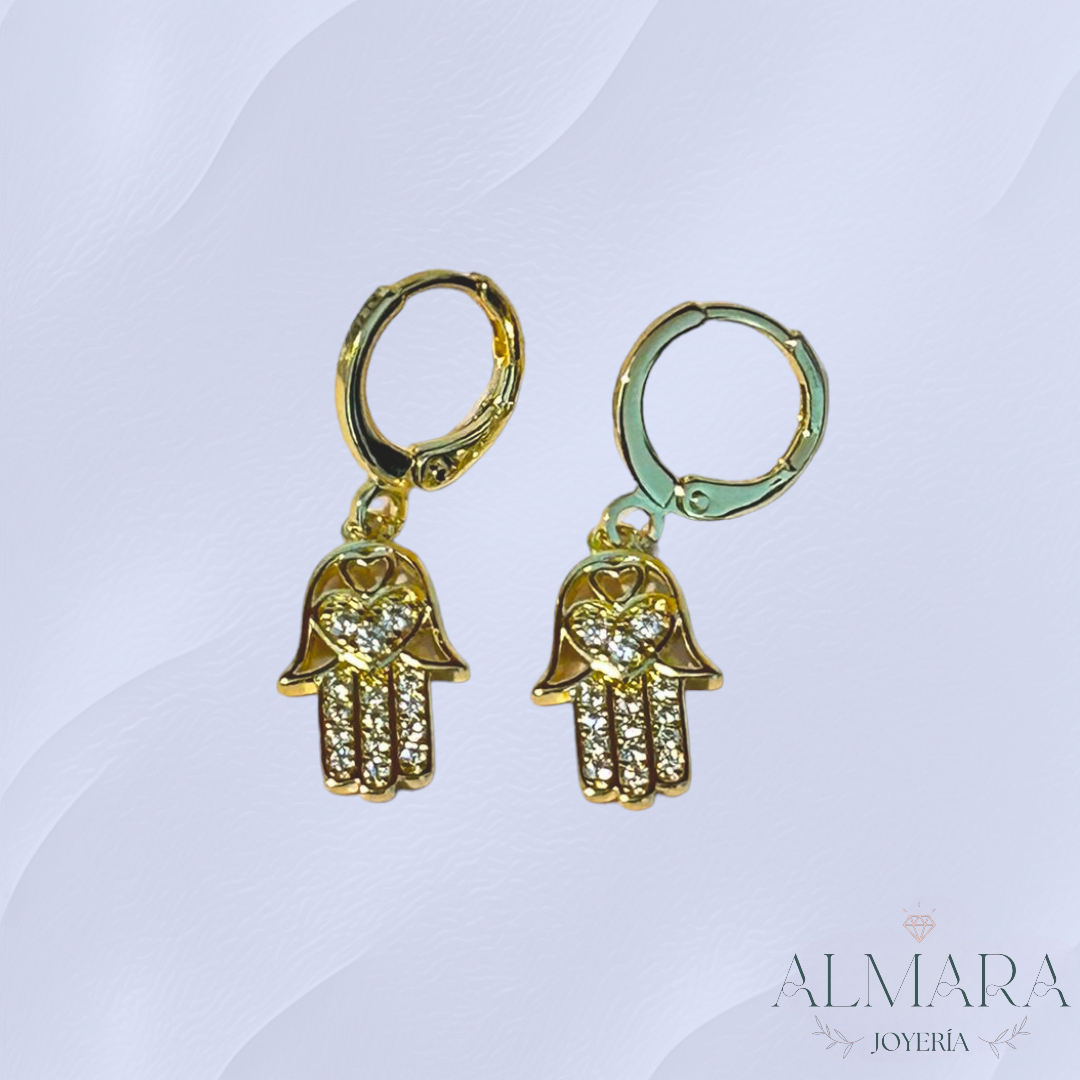 ¡Añade un toque mágico a tu look con estos aretes Huggies con Manita de Fatima y hermosas zirconias! Hechos de oro laminado, estos aretes traen suerte y protección a tu vida. ¡Haz una declaración de estilo con este accesorio que atrae las miradas!
