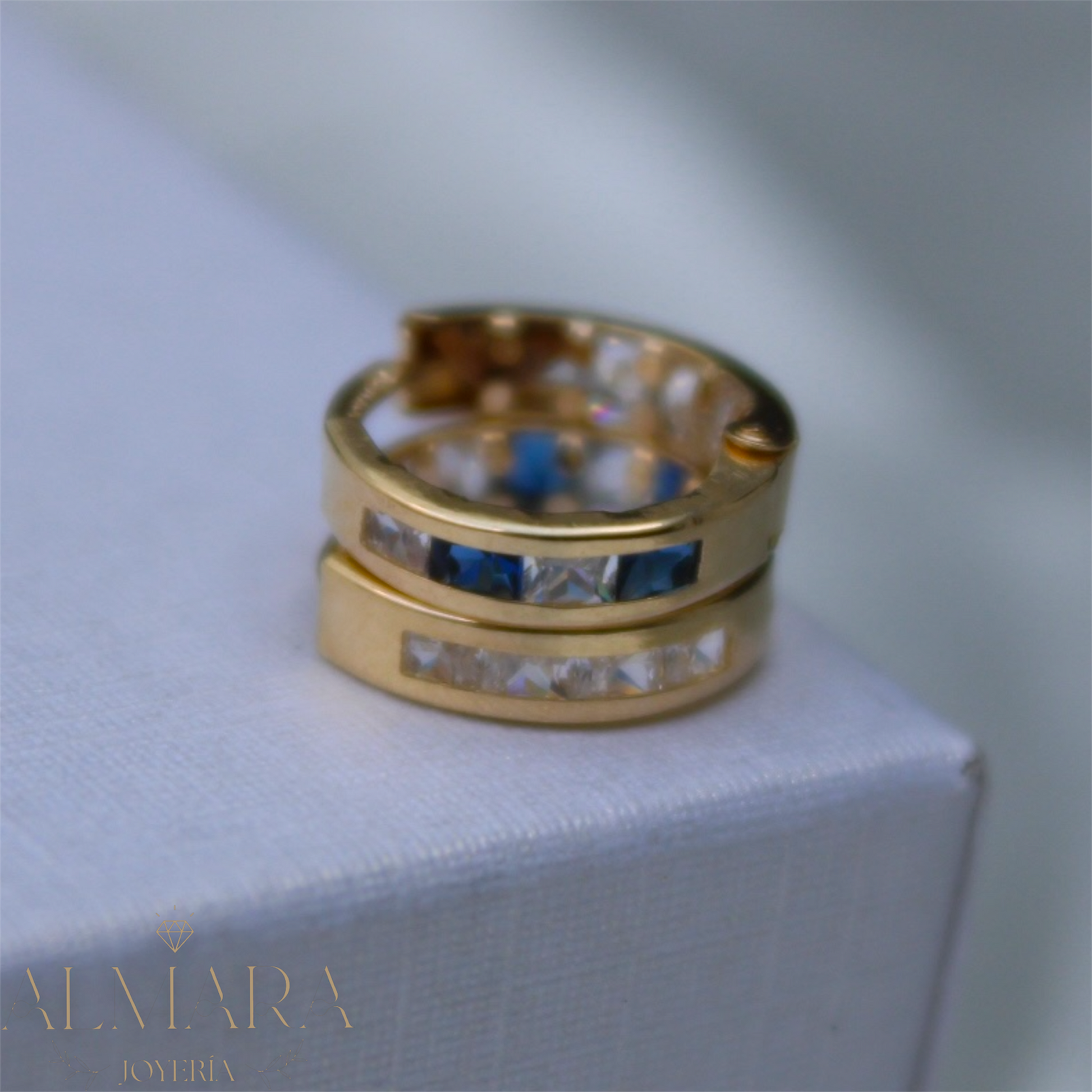 Huggies en Oro 10K con Zirconias Azules y Blancas