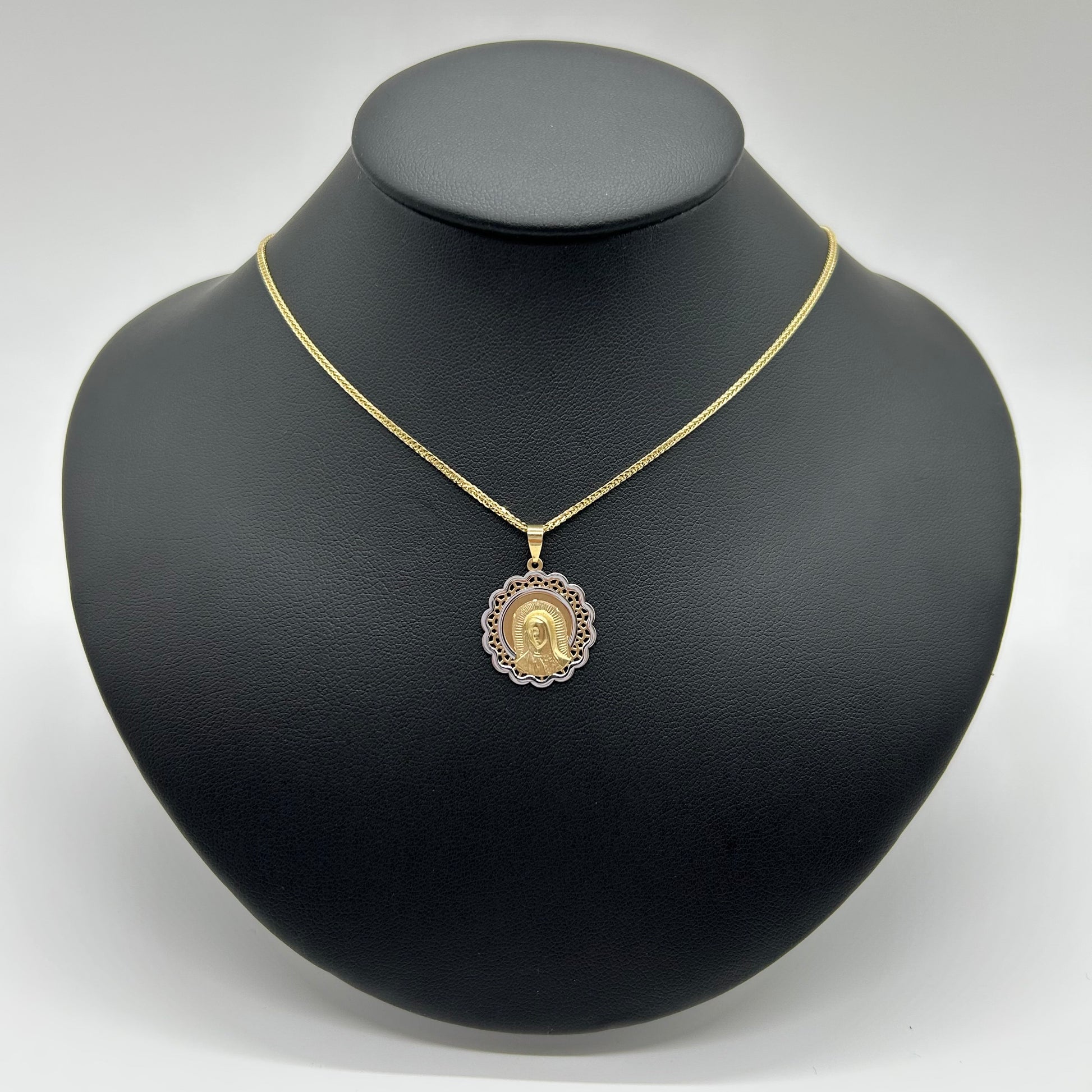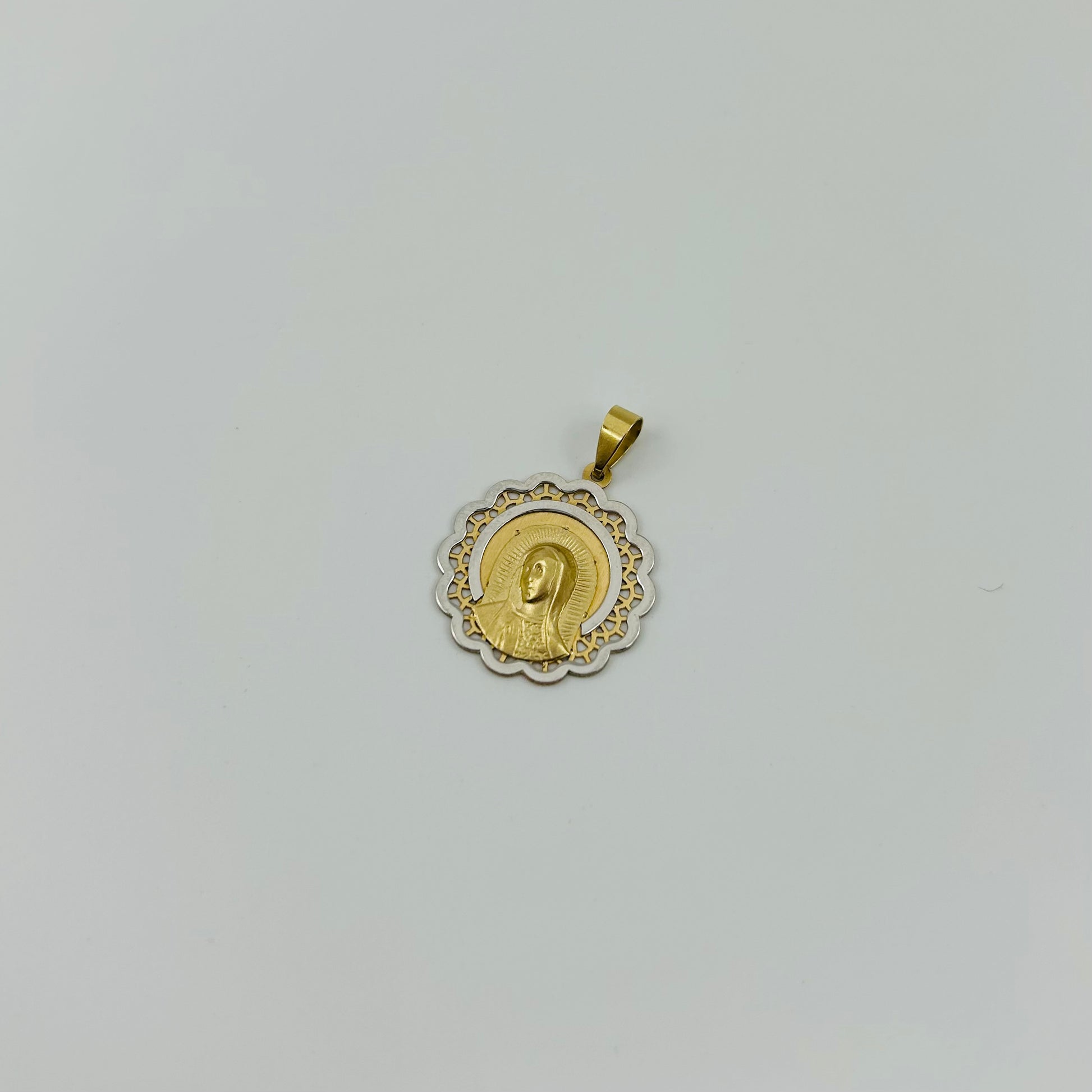 Esta medalla de la Virgen en oro 14k es una hermosa pieza para protección y bendición. Con un delicado diseño en forma de olán, esta medalla es una forma elegante de llevar la fe siempre contigo. Una joya especial que traerá paz y protección a tu vida.