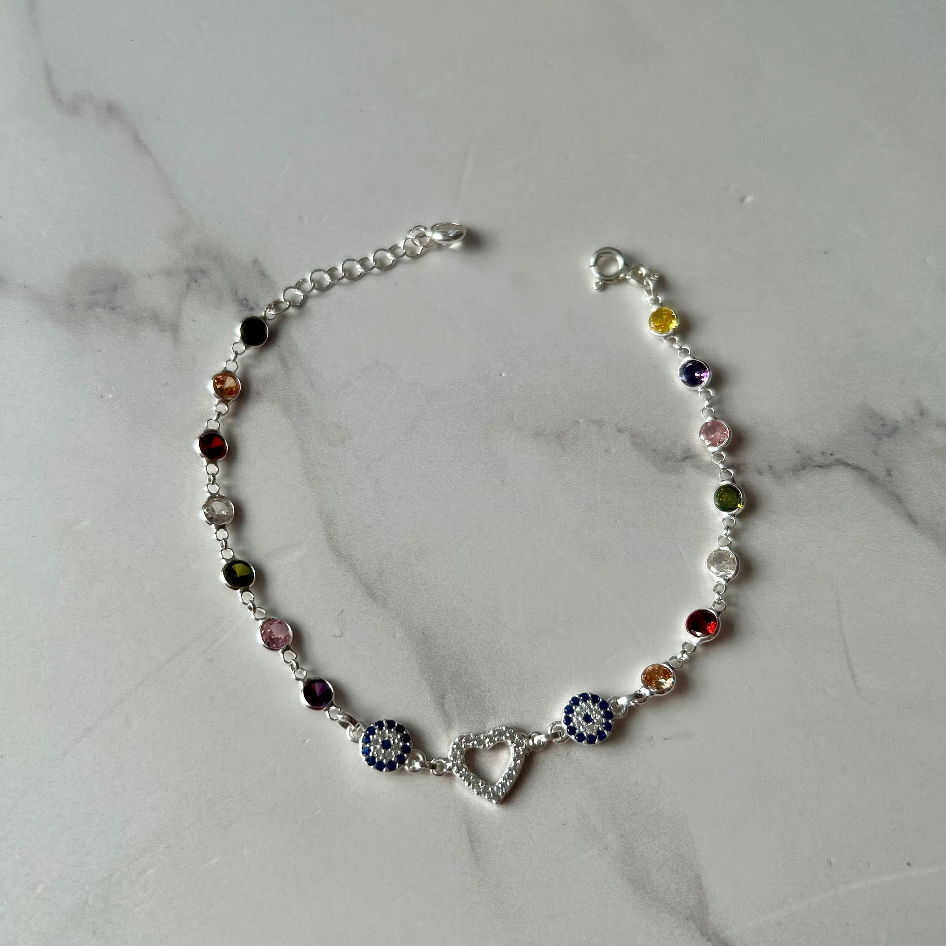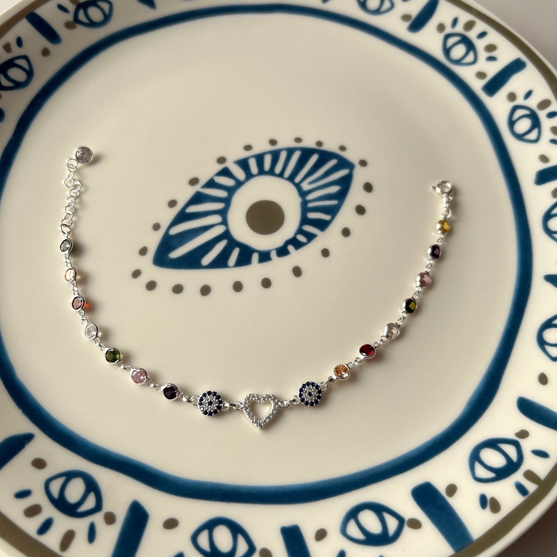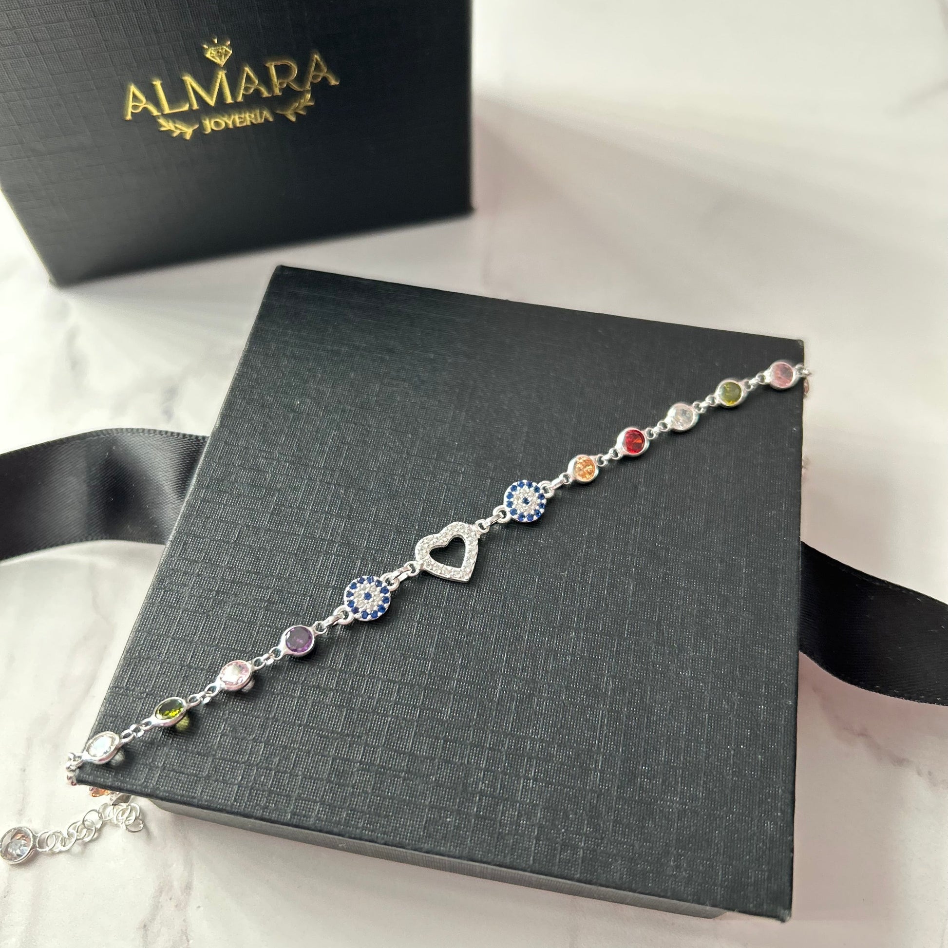 Protege tu corazón y aleja la envidia con nuestra pulsera de plata con un hermoso corazón y un Ojo Turco. Esta pulsera no solo es un encantador accesorio, sino también una protección poderosa para tu bienestar. Haz una declaración de moda y protege tu energía con nuestra pulsera única.